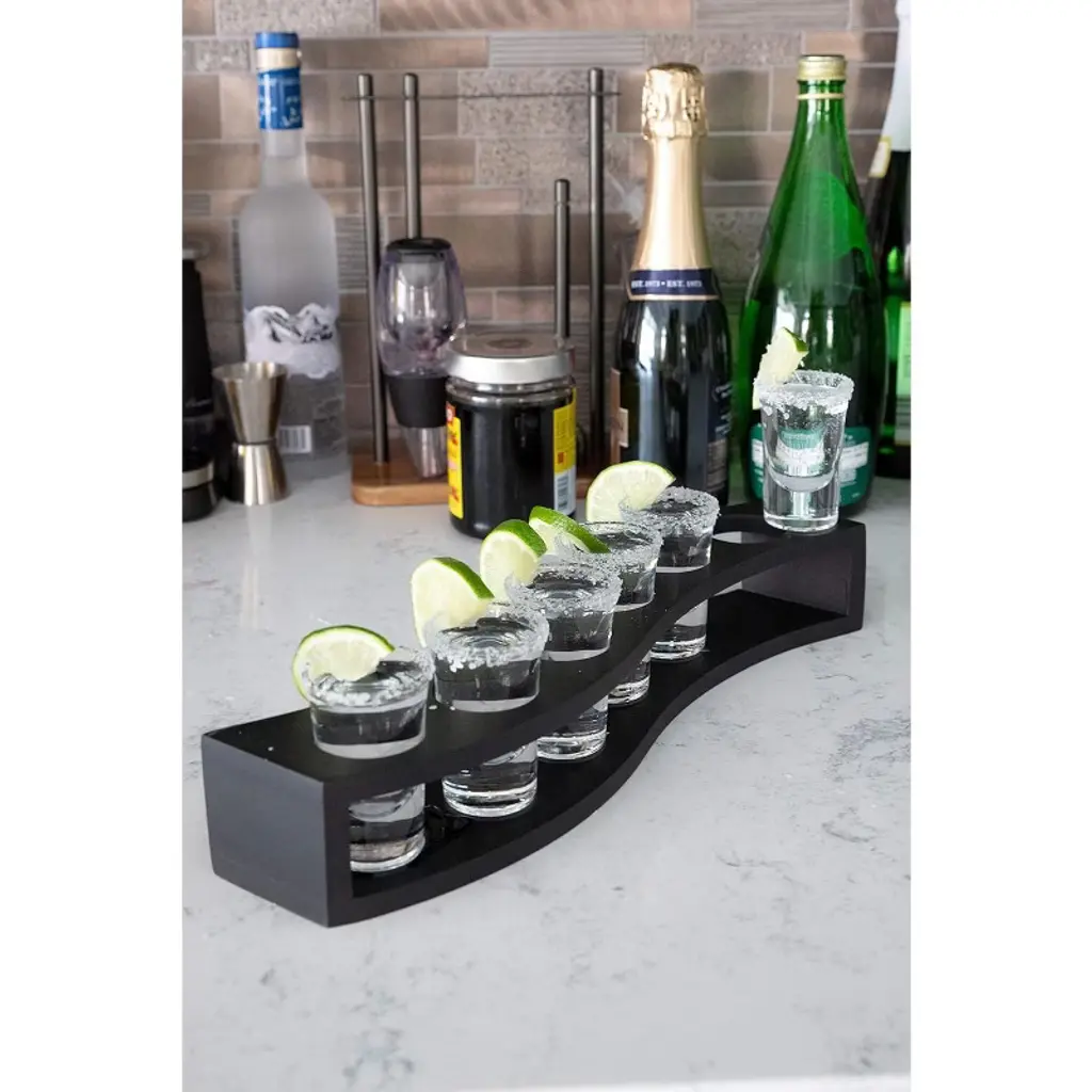 Lemonsoda Shot Glass Set With Wood Layered Base Tray - Set Of 6 -1oz