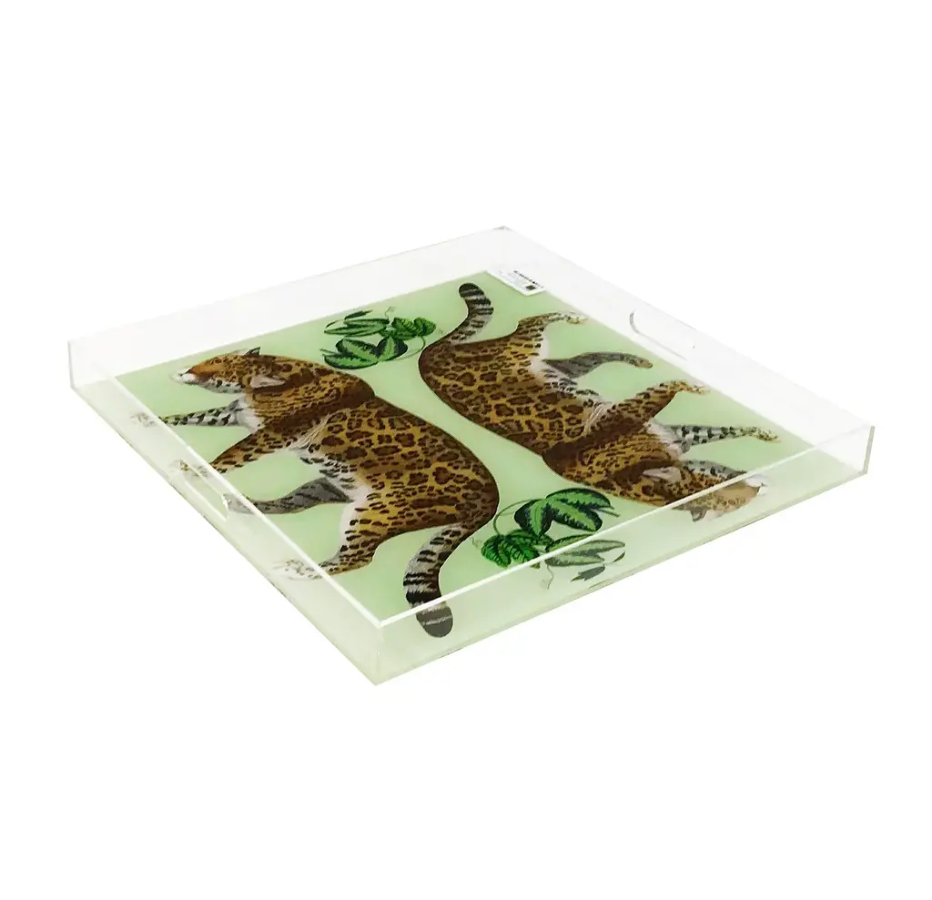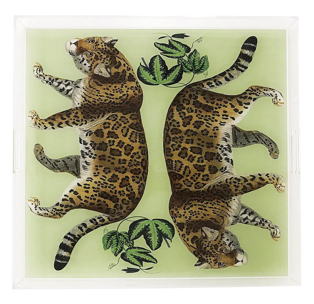 Leopard Seeing Double Avocado, 18"x18" Acrylic Tray