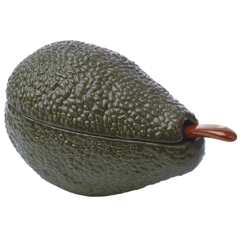 Present your preferred appetizers with style using this 12 inch ceramic plate adorned with an avocado design. Crafted to replicate an avocado with a sizable dark brown seed, these ceramic pieces bring a fun element to your buffet table or to your dinner table. The festive design adds a touch of fun and elegance to serving your favorite dishes and snacks. Made of ceramic with a glossy finish, this plate is not only visually appealing but also makes for a great gift on any occasion. Please note that hand washing is recommended for care.