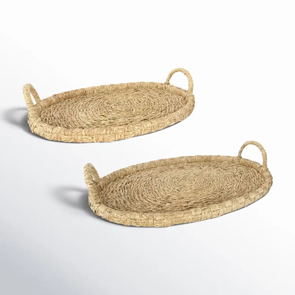 Liam Coastal Beach Natural Abaca Decorative Trays - Set Of 2