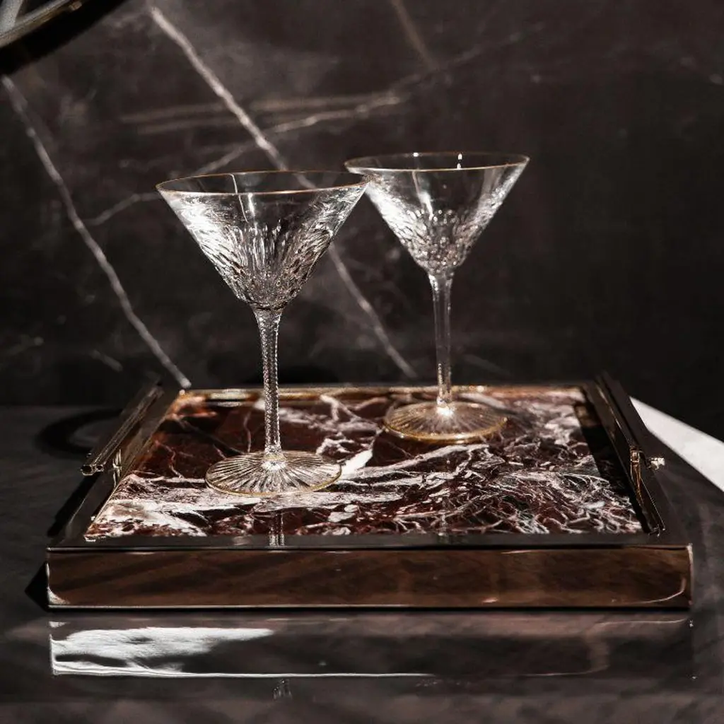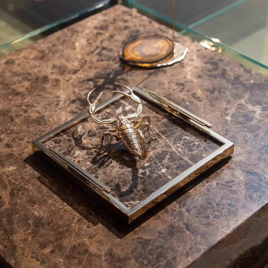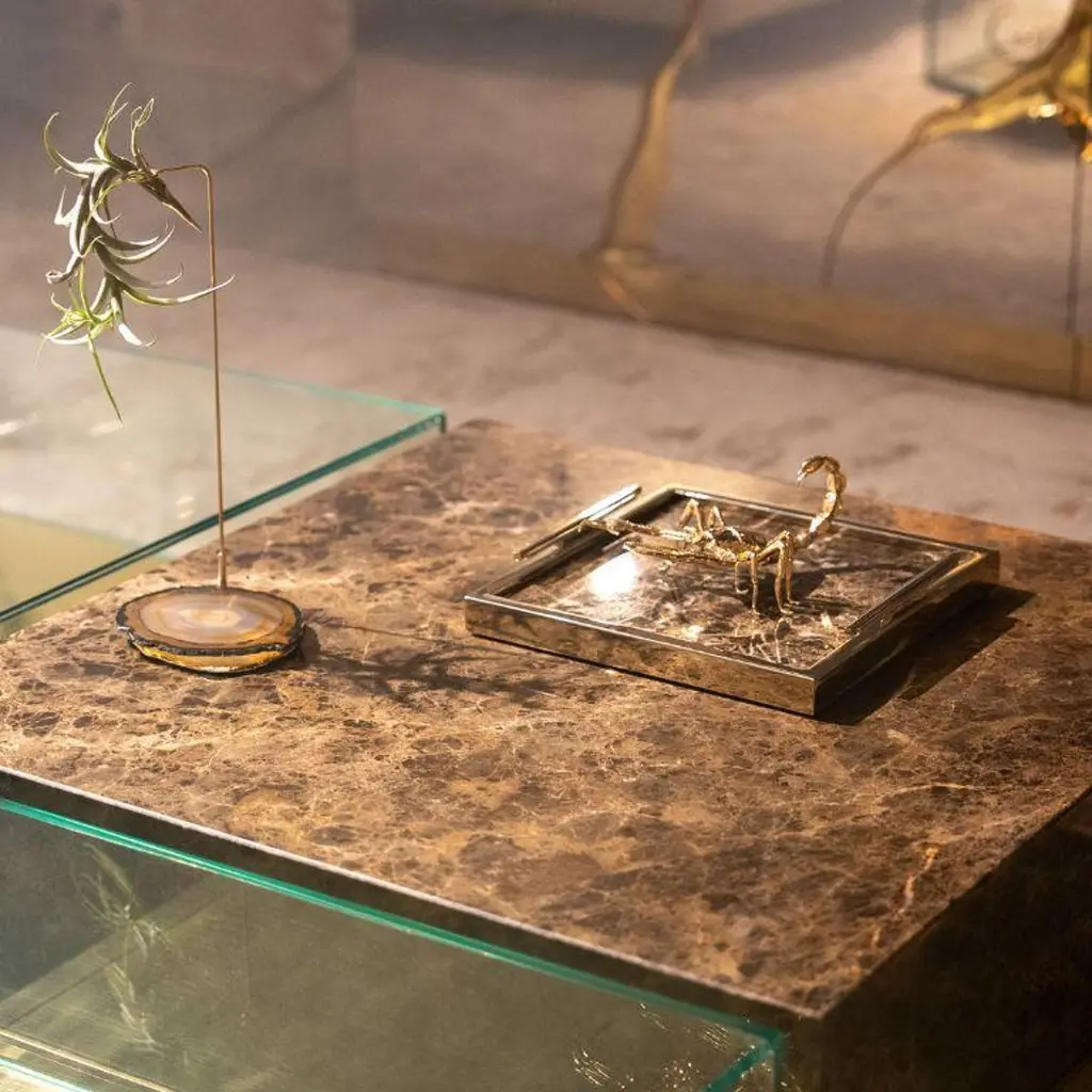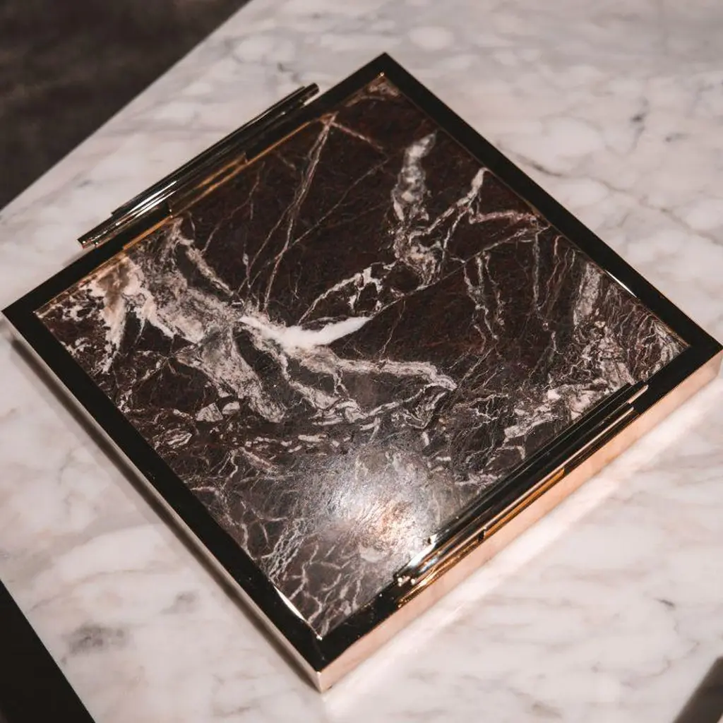 Libera is an exclusive decorative tray that masterfully combines refined industrial techniques with the beauty of handcrafted artistry. This unique piece is the result of a meticulous process where precision meets creativity, resulting in a timeless object that exudes elegance and sophistication.What truly elevates Libera is its use of noble materials, particularly the selection of semi-precious stones, each chosen for their natural beauty and ability to evoke distinct moods and ambiances. These stones not only add a touch of luxury, but also serve as expressive elements that reflect personality and style.Whether placed on a coffee table, console, or dining surface, Libera brings a sense of refinement and intention to the space. More than a tray, it is a statement of taste and timeless design.