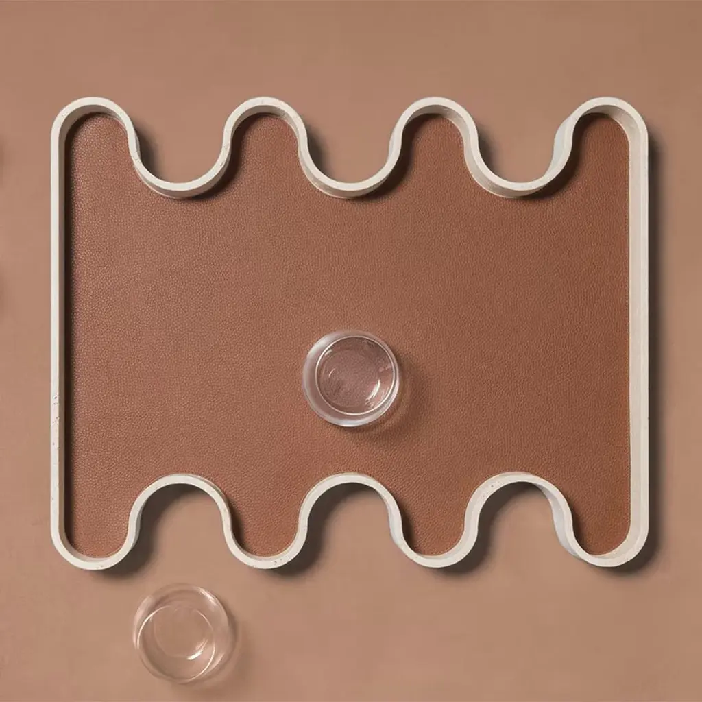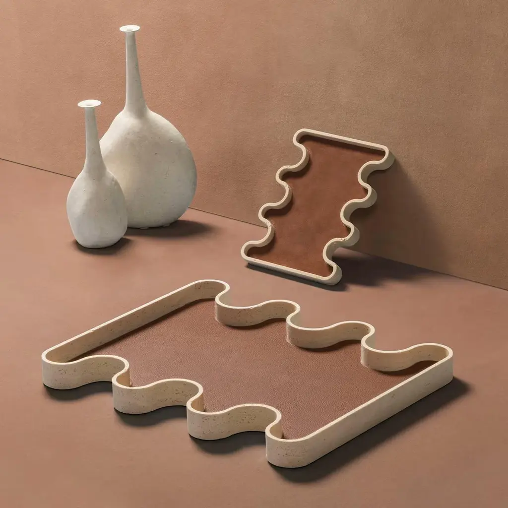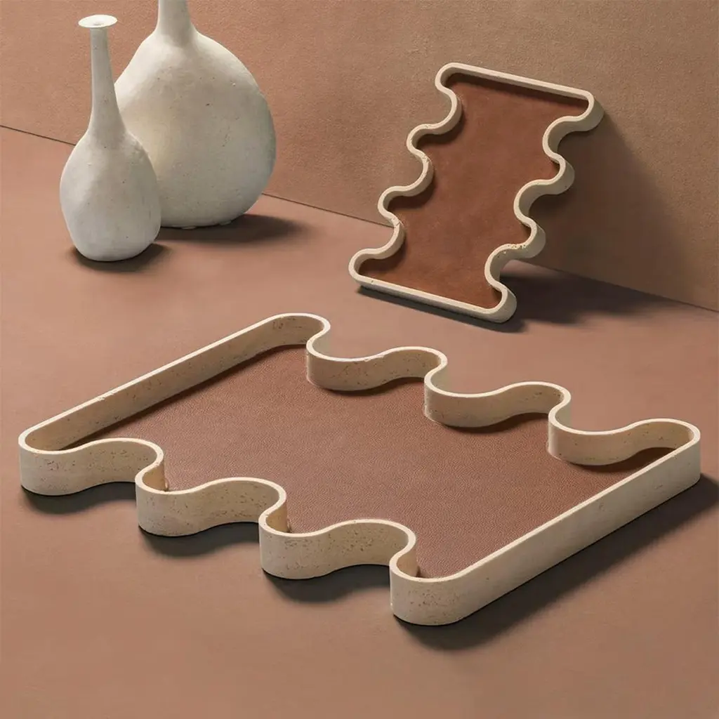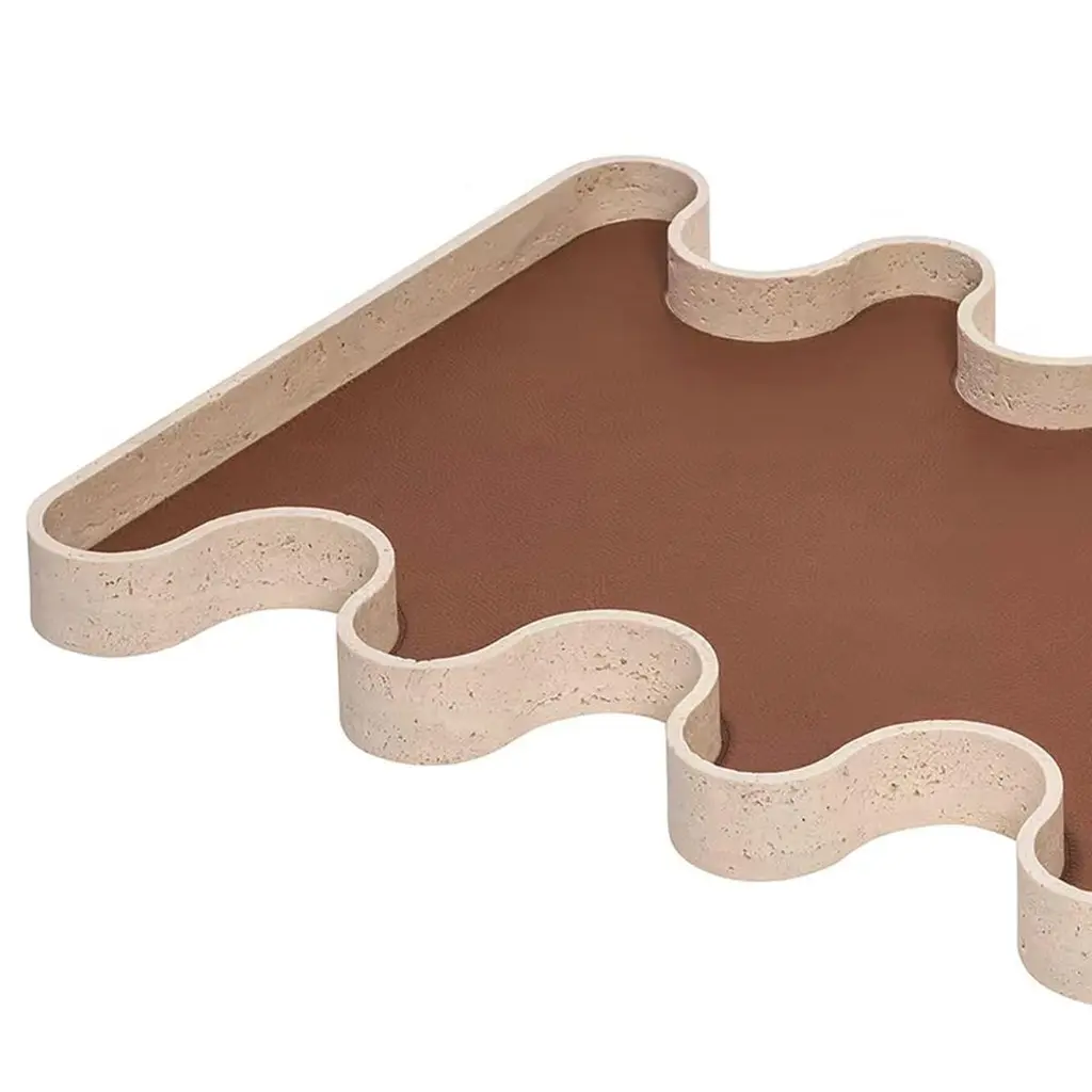 Tray Liguria Marble all in white marble withmovable calfskin genuine leather inlay topin brown finish.