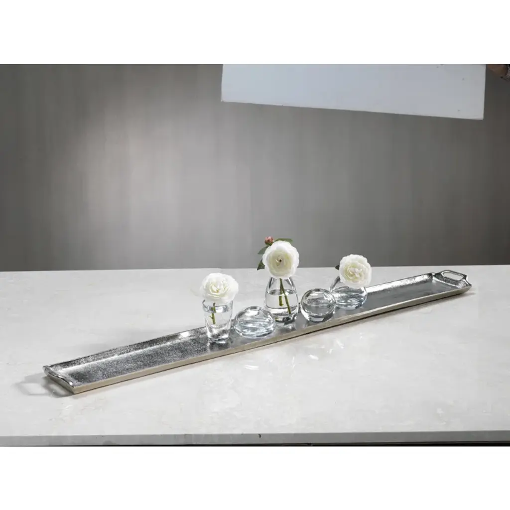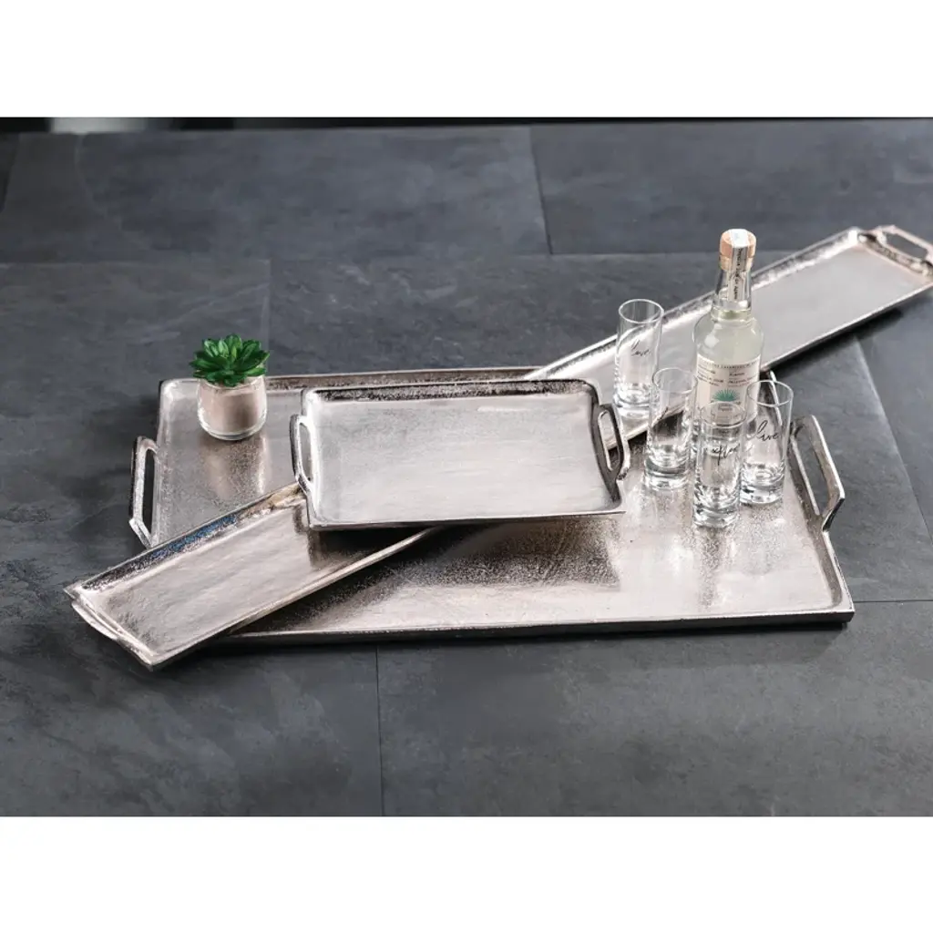 This chic rectangular serving tray is your new best friend for hosting parties. Crafted from metal, this tray exudes elegance and durability. It adapts well to any decor and enhances the visual appeal of your hors d'oeuvres or your table's centerpiece. Time to dazzle your guests, one tray at a time!