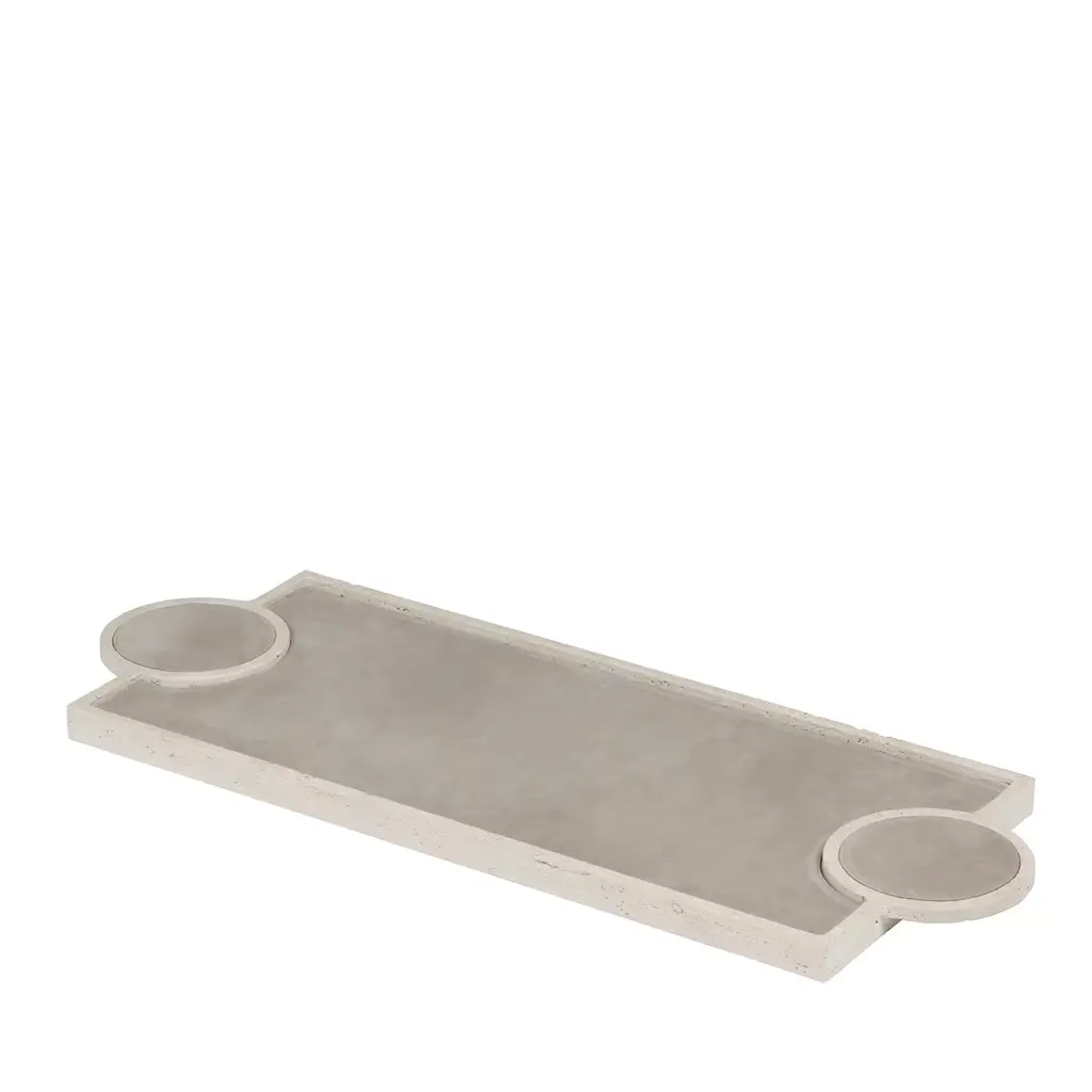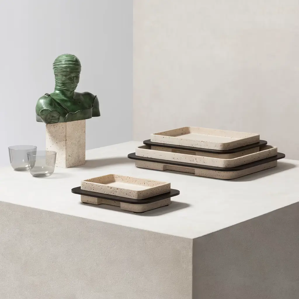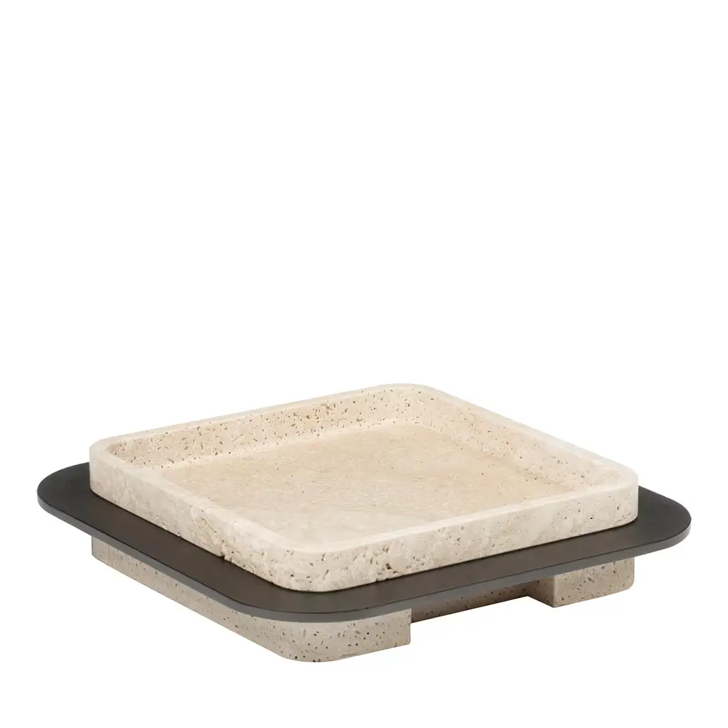Travertine structure with brushed burnished bronze frame. Custom sizes available on request.