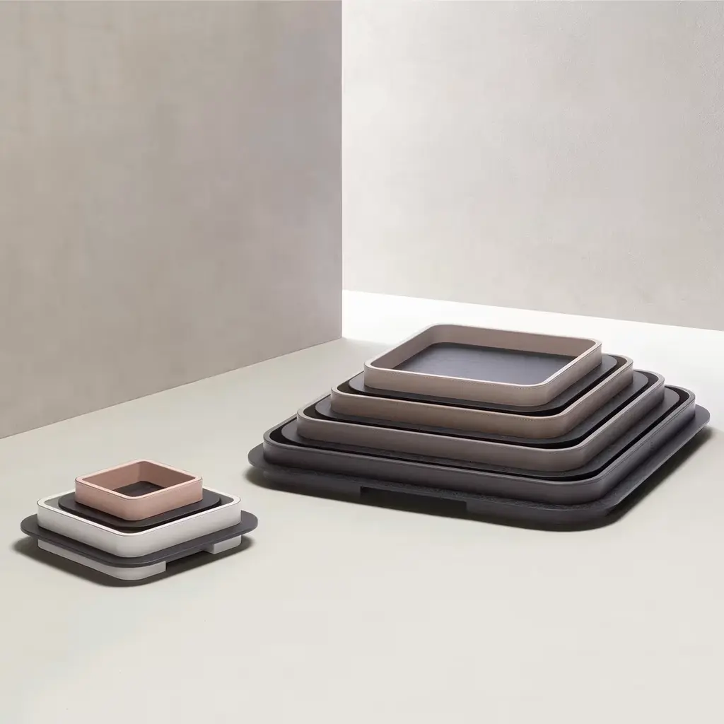 Elegant in its simplicity, this square tray is a timeless and versatile piece of functional decor that can be used to serve drinks or food during a special event or as a display surface for personal collectibles. Combining dark and light hues, it features a wedge-finished wood structure partially covered with ivory leather upholstery on the top frame and base structure. This design is available in a walnut finish and in other sizes upon request, please contact the Concierge.
