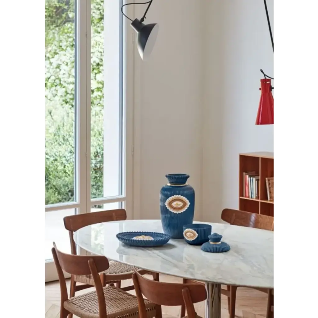 Porcelain tray from the Lover's Eyes collection, inspired by a fascinating centuries-old tradition. An iconic Spanish brand, Lladro is a world leader in the creation of porcelain art. Started by brothers Juan, Jose and Vicente Lladro in 1953, the ceramic figurines were initially inspired by the works of great European manufacturers like Meissen and Sevres. Over time, a unique style was forged, consisting of elongated lines, a revolutionary single-firing method, and soft pastel tones.