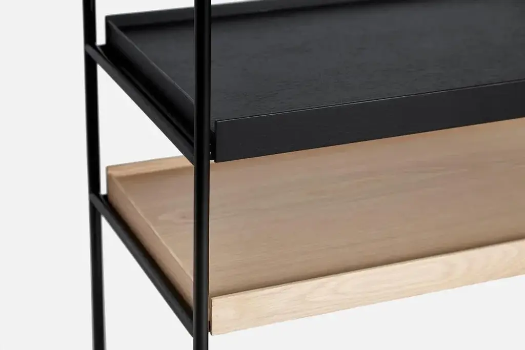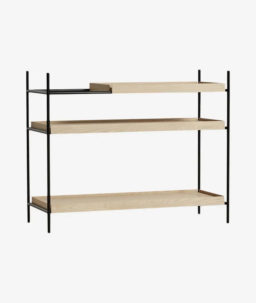 Low oak tray shelf by hanne willmann. Materials: metal, oak. Dimensions: d 40 x w 100 x h 81 cm. Also available in different tray conbinations and 2 sizes: h81, h 201 cm. Hanne willmann is a dynamic german designer with her own multidisciplinar y design studio based in berlin. She has an impressive portfolio of furniture and lighting designs, projects, jury memberships and workshops at the university of the arts, berlin. Her designs reveal a profound fascination for details and emphasise the high-value aesthetic appeal. With an open mind and a strong dedication to the craft, hanne willmann is determined to fully reveal the essence of every piece she comes across. This meticulousness is visible in her understanding of materials, colour and innovative production techniques. A shared feature for her designs is the consistent timelessness. Tray shelf is designed with this sustainable mindset and with the intention of staying functional and beautiful as time goes past. Its simple expression, elegant materials and solid construction are made for use for many years to come. Woud the founders, mia and torben koed, decided to put their 30 years of experience into a new project. It was time for a change and a new challenge. The challenge was to build an ambitious design brand from the ground up with high-quality materials and great attention to the little details. With a drive to create new originals, the woud collection is founded upon the idea to look ahead instead of looking back and share the love for honest design. Therefore, we are eager to discover and develop new ideas whether it being in form, function or choice of material.