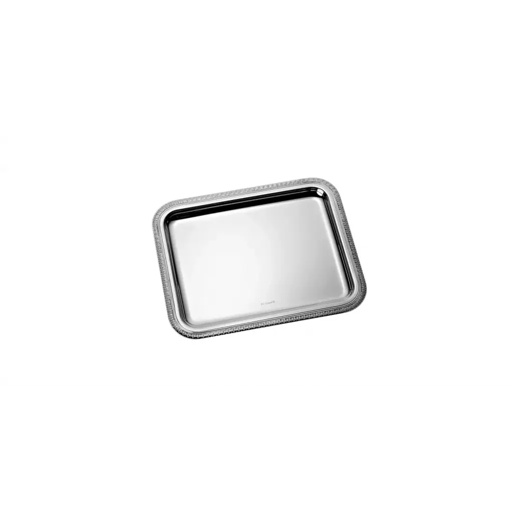 This small silver plated rectangular tray in the Malmaison pattern can be used for presentation or serving. One of Christofle's most historic patterns, Malmaison typifies the Empire style, with its frieze of delicate palm and lotus leaves and symmetrical design. The name is a nod to the Chateau de la Malmaison, a favored Parisian residence of Napoleon Bonaparte and Empress Josephine. Malmaison, one of Christofle's most historic patterns, is in the Empire style. The frieze of delicate palm & lotus leaves is typical of this style. Thanks to its creations in silver, Christofle is a symbol of luxury and elegance. Since its founding in the mid-19th century, it has been a continous innovative force and has infused each era with a new art of living. Thus, over time, this prestigious company has revolutionized styles, techniques, and methods for the production and distribution of silver plate and the decorative arts. A player in and privileged witness to the evolution of taste, customs, and traditions, Christofle has always seen its name associated with major creative trends, renowned artists such as Man Ray or Jean Cocteau, avant-garde architects such as Gio Ponti, and modernist silversmiths such as Lino Sabattini and Christian Fjerdingsatd, as well as present-day designers such as Andrée Putman, Martin Szekely or Ora ïto. Today, as in the past, whether gracing the tables of emperors, princes, or maharajas, in palaces, on board the Trans-Siberian Railway, Orient Express, or transatlantic ocean liners, or in the contemporary restaurants, Christofle continues to make an impression.