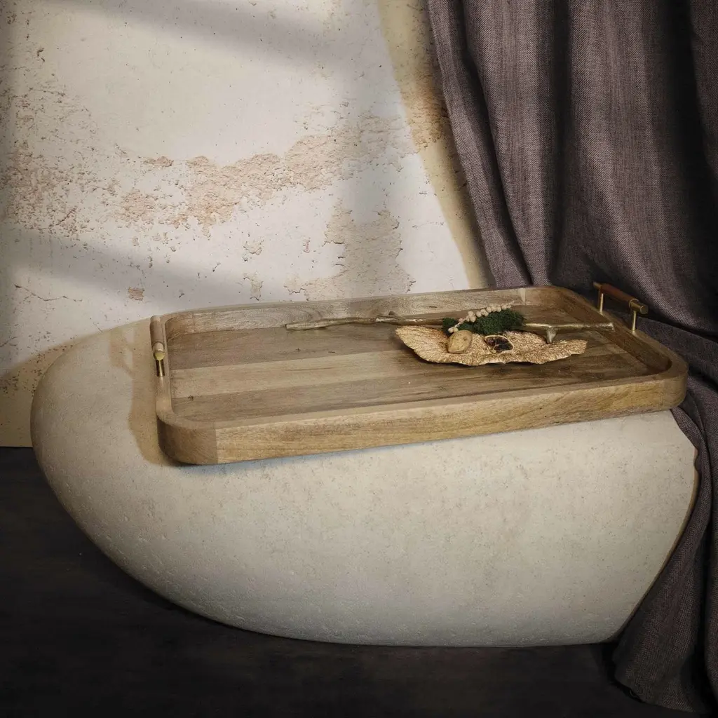 The casual aesthetic of wooden accessories is captured within this tray. A piece for efficiency and elegance, this wooden tray can serve as a base for candles and other decor elements to rest upon or be taken from room to room, transporting daily essentials throughout the home. Suitable for rustic chic, classic and contemporary spaces, this tray completes the welcoming energy of the interior.