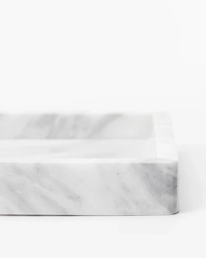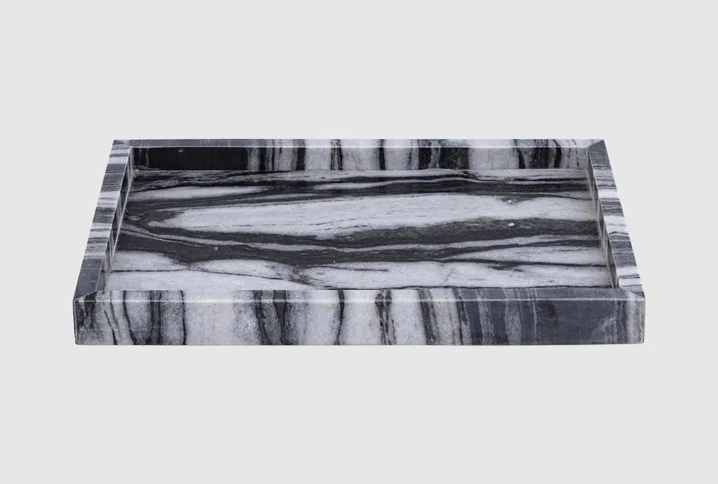 Broad and shallow, the Marble Tray graces everything from countertops to built-ins with an elevated feel and intentional function. Designed with bold gray marbling and clean, straightforward lines, the Marble Tray is the perfect accent for your decorative vignettes.