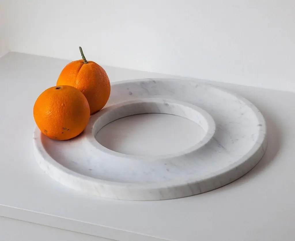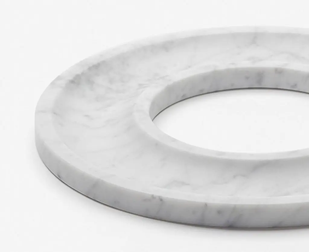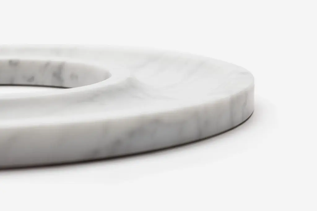 The Marblelous Ring Tray is a minimalist style round shaped centerpiece made of treated Carrara marble, manufactured according to traditional methods. Josep Vila Capdevila, head designer of Aparentment, was inspired by the mediterranean ancient cultures and civilizations, where the basis of the current beauty concept in Western culture were developed, recalling "Cold Mediterranean", which is the essence of Aparentment.