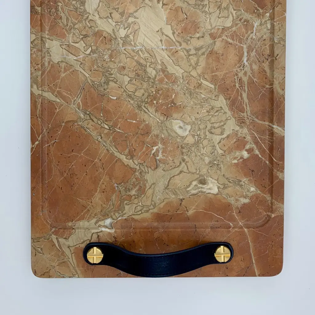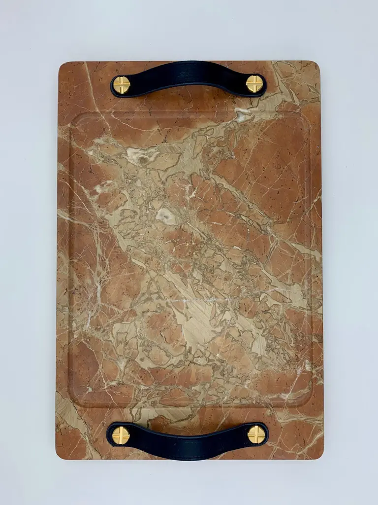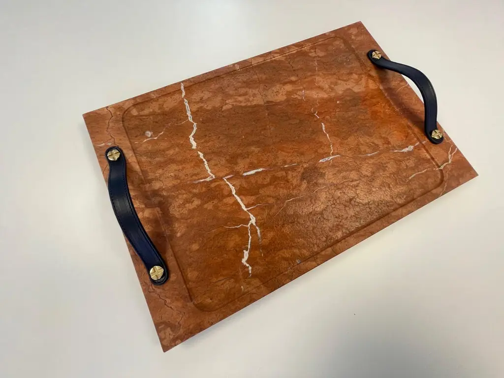 Marble Tray Reddish Color, With Leather Straps, Large