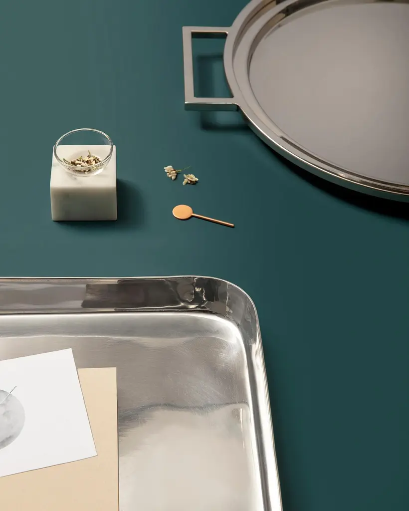 Masai is a family of rectangular polished metal trays designed by Aldo Cibic, available in two different sizes: small and large. The high edges and the rounded corner make this tray an handy object. The large one is perfect, for example, to serve drinks and food, during a party or for the tea time, but it is a versatile piece that could be used to exhibit small objects, to decorate an interior, like a living room, a studio a lobby and much more. It can be perfectly combined with the smaller Masai tray for a dynamic display.