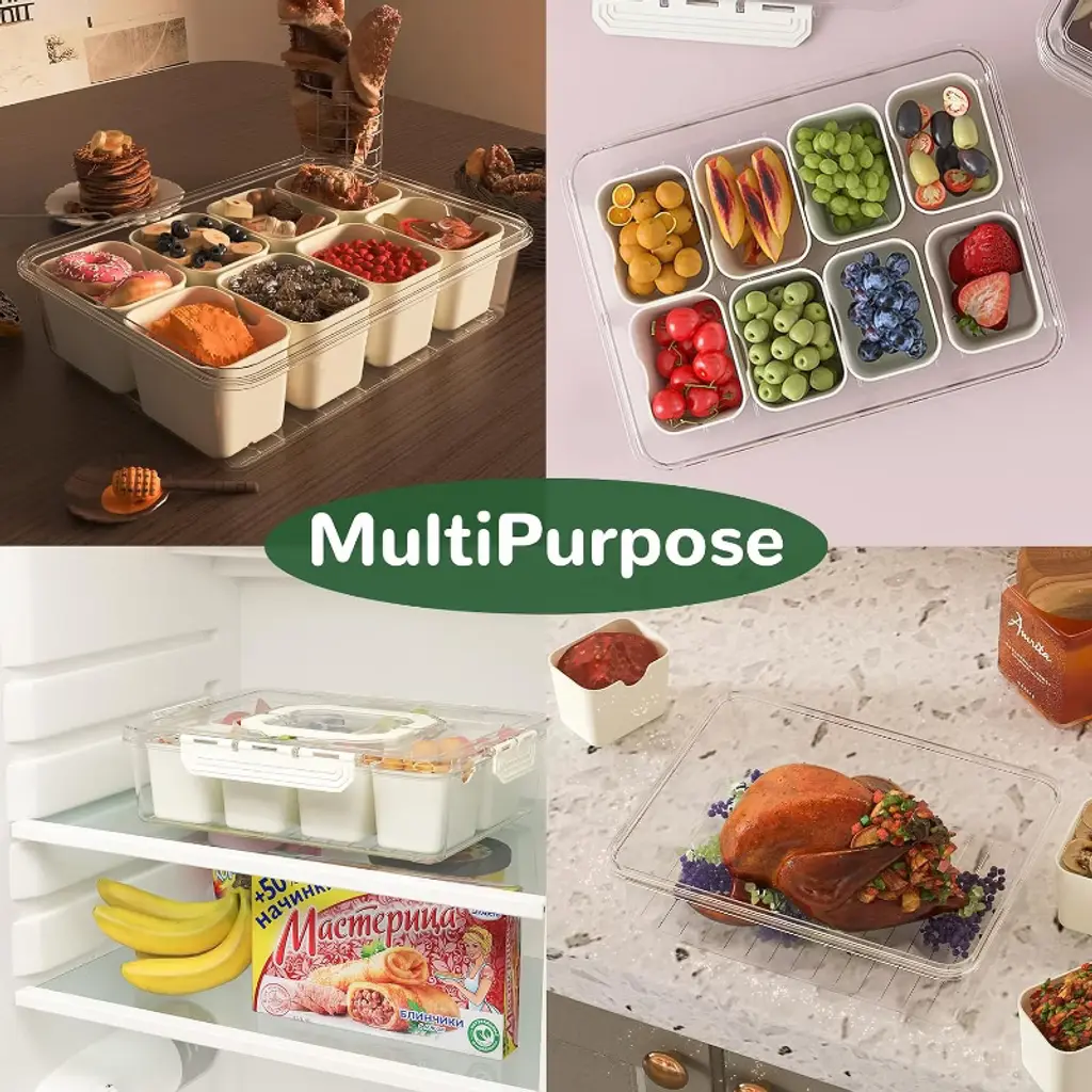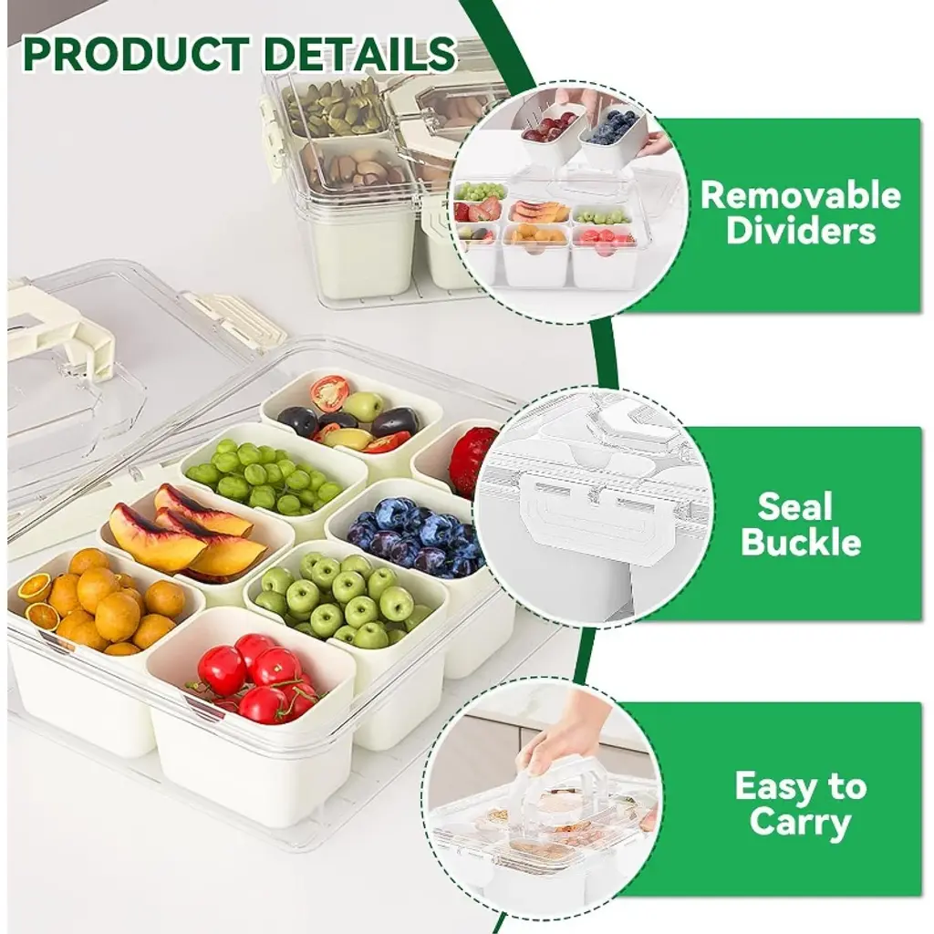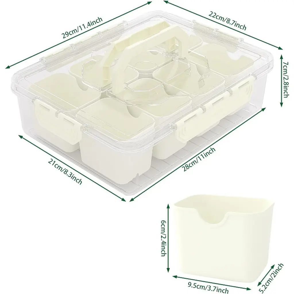 Maseikar Divided Serving Tray With Lid, 8 Compartment Snack Box, Charcuterie Organizer, Snackle Box For Candy, Nuts, Fruits, Snacks, Beige