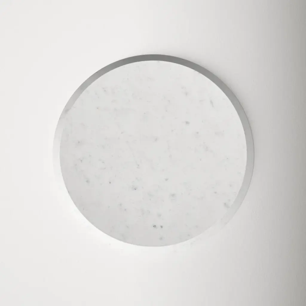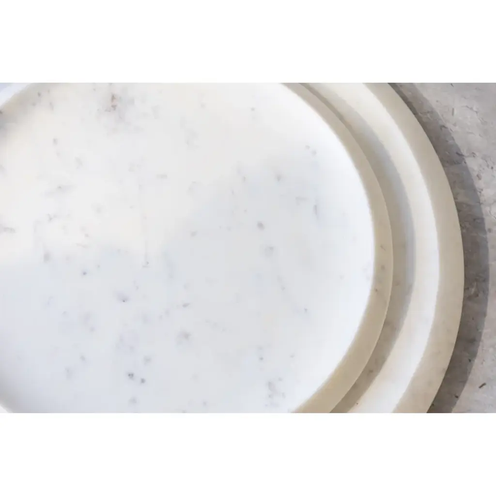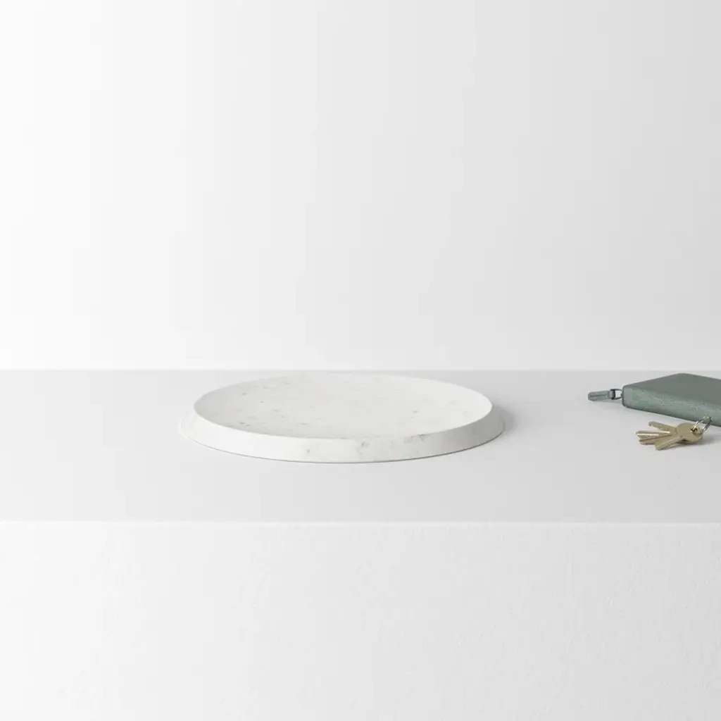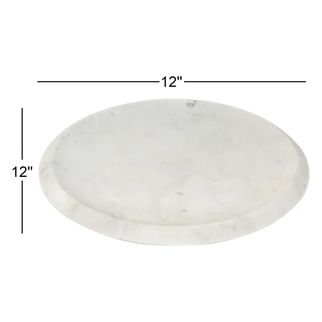 Classic rock. Crafted from creamy white marble, this serving tray’s timeless circular silhouette lets its monumental material take center stage. It sets an elevated stage for book club charcuterie spreads, coffee table candle collections, and even incoming mail.