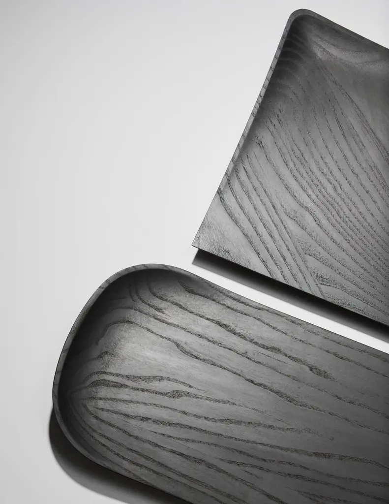 Medium Creux tray by Clemence BirotDimensions: 39 x 22 cmMaterials: ash (black stained).Clemence Birot started her career in Copenhagen, Denmark, and discovered a design practice closely related to craftsmanship. The latter plays an avant-garde role. Motivated by a free artistic practice and enriched by its know-how, it dictates the exploratory and innovative dynamic in the design process.Thus in the design studios she worked for, she frequently collaborated with artisans for the product development (tableware, interior accessories). Their know-how led her to the constant research of a unique result where the material is respected and despite technical challenges always in focus. The material itself occupies this central place throughout all the project. Back in France, she hold on to this collaborative approach with craftsmen, whether for the initial phases of creation or for bespoke pieces production.At a time of mass production, the product origin is often vague, far from our territories and our values.Today, Clemence wishes to go further in this process of enhancing hand intelligence and unique know-how, while producing ethically and locally. In this spirit she develops a range of objects in small series, with clean shapes, through which she claims this attachment to natural and sustainable materials, a timeless design far from industrial standard. All these objects are manufactured in France or in Europe, as close as possible to the places of the raw materials production, by craftsmen with outstanding know-how.
