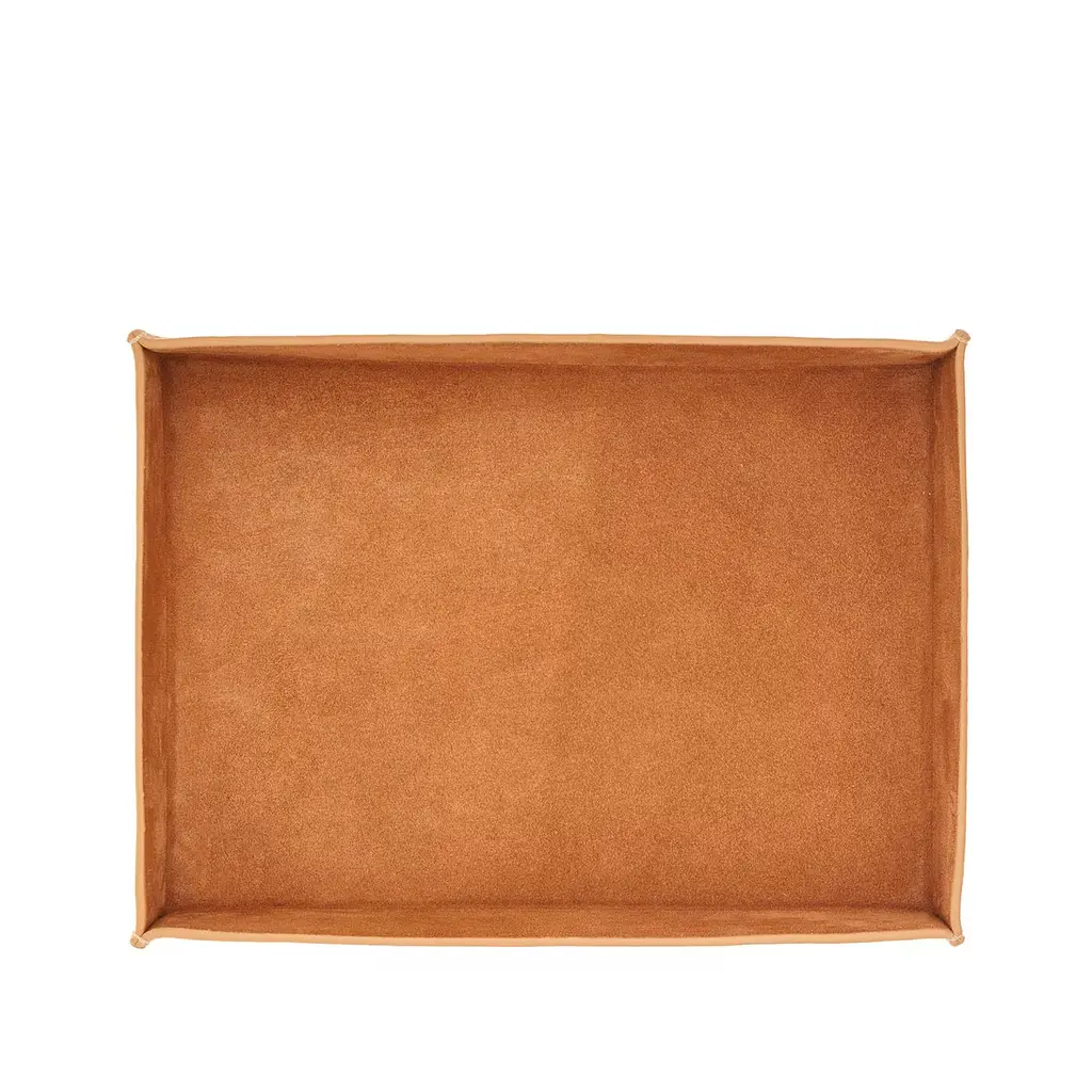 Eye-catching in its structured design, this medium valet tray in natural leather offers both elegance and practicality. Its spacious size accommodates larger items effortlessly, making it ideal for organizing desk essentials or keeping personal belongings in order. Hand-stitched corners and a suede lining highlight its refined craftsmanship. Crafted in Tuscany from premium vegetable-tanned leather, it showcases Il Bisonte's signature style and the exceptional artisan skill.