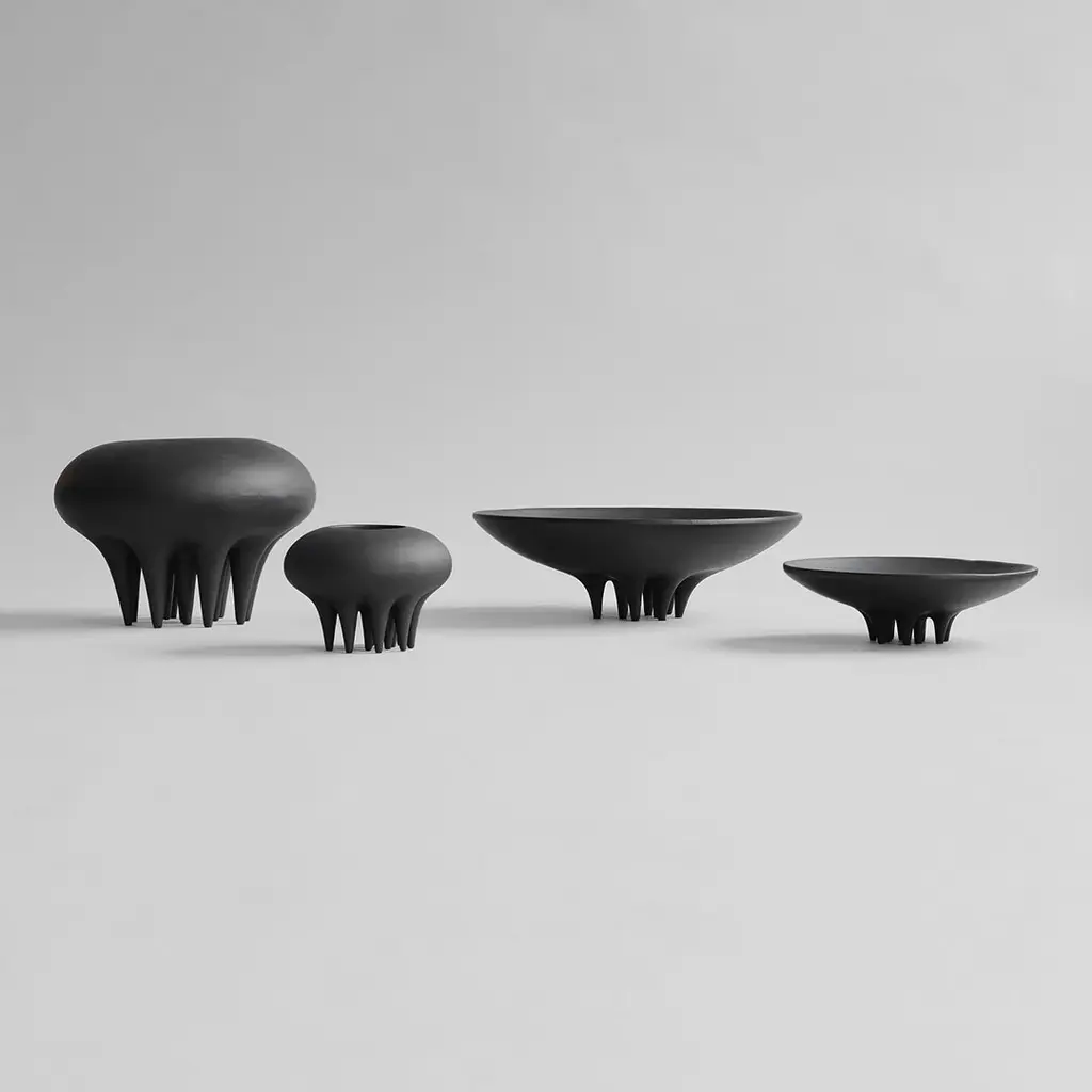 Inspired by the characteristic shapes of the Medusa, the Medusa Ceramics emphasises the soft oval shapes and details of the jellyfish.Elegantly sculpted, each Medusa is lifted slightly above the floor by a number of small conic shaped legs, reminiscing the tentacles of the jellyfish. Medusa has a very elegant and simple expression and can easily be placed in any interior scheme as a sculptural object or vase for flowers or decorations.Medusa comes in both vases and trays and is made from ceramic. The surface is hand glazed in order to achieve the unique surface texture. The colours may vary slightly, due to that it is a handmade product. The vase is not 100% waterproof, therefore a bag for fresh flowers is included. Designed by Kristian Sofus Hansen & Tommy Hyldahl.