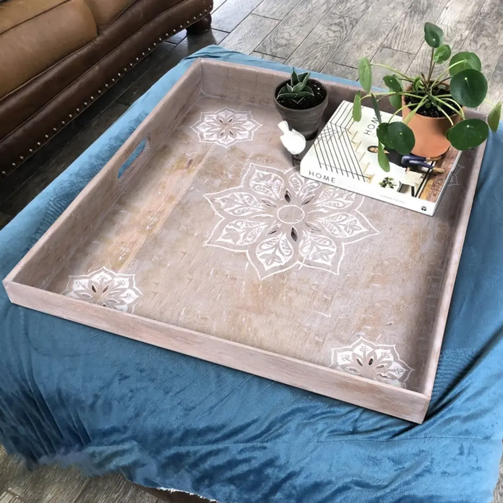 Mela Artisans Decorative Wooden Ottoman Tray W/ Handles”