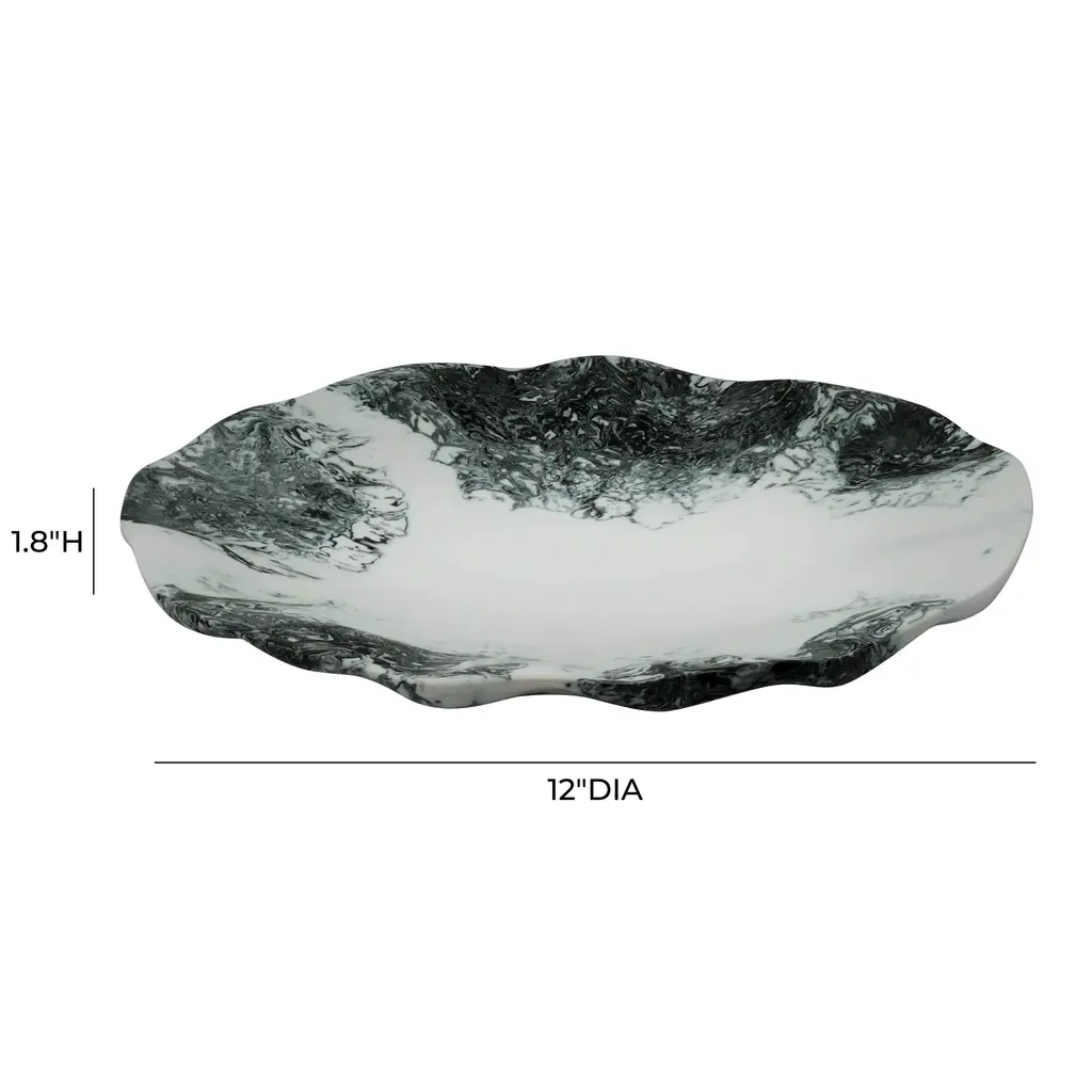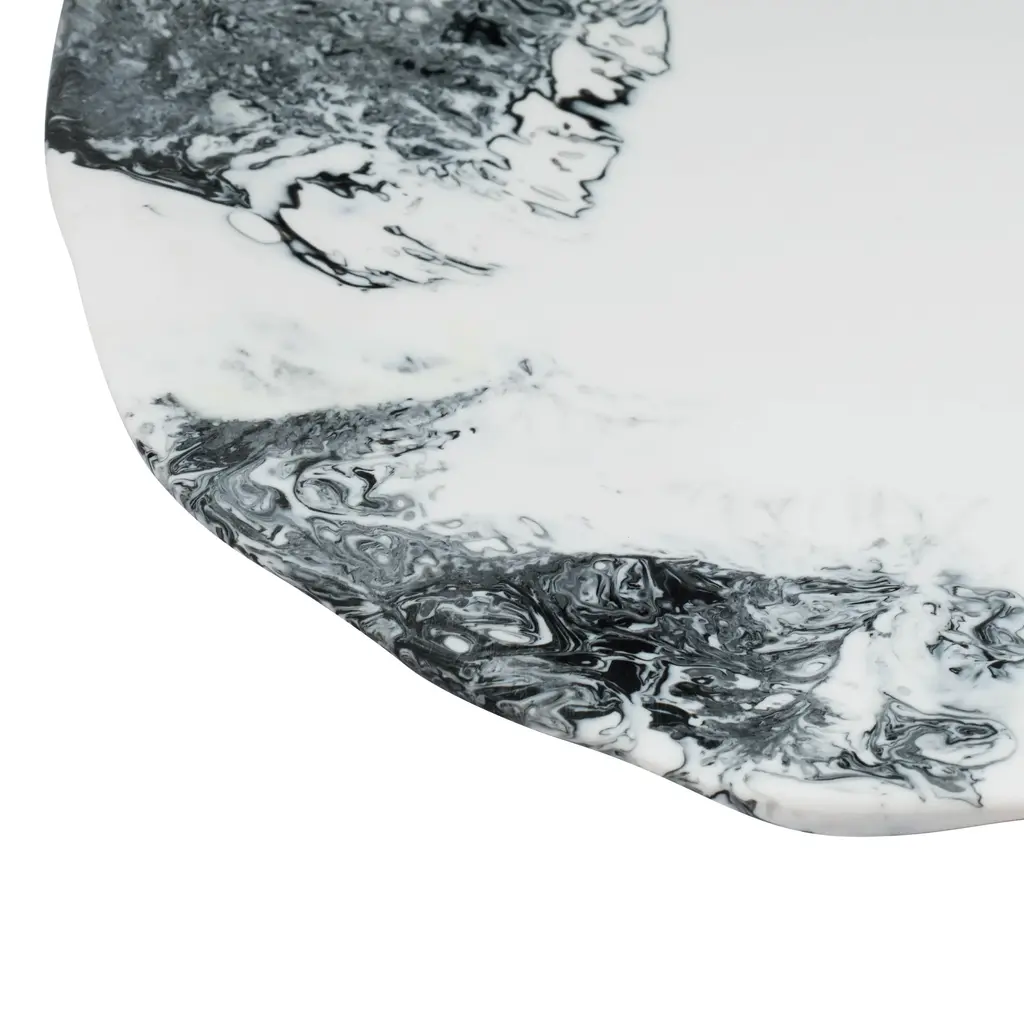 Swirled resin patterns give the Mera collection its one-of-a-kind artistry, with each platter, bowl, and tray showcasing fluid color variations that feel sculptural and modern. Whether styled as serveware or as standalone accents, these pieces bring a bold, high-contrast statement to the table while still feeling organic and effortless.