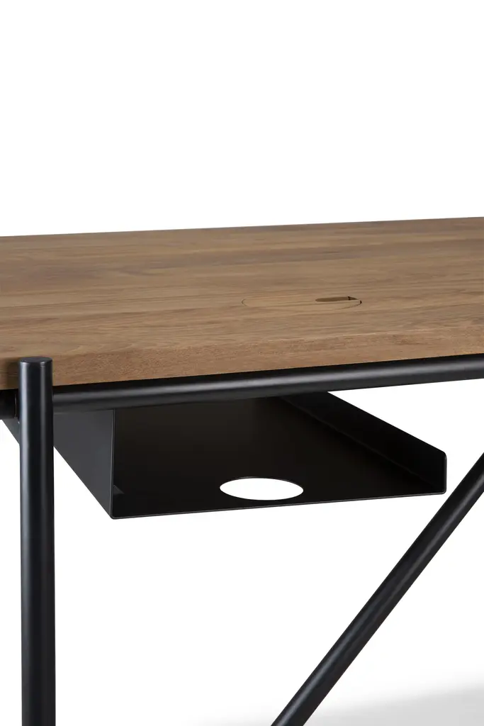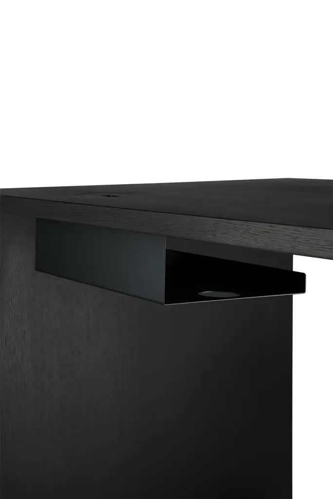 Organize and conceal under-desk cables with the Metal cable tray. Designed to fit Ethnicraft desks, the tray holds external sockets, control boxes and cables for a clean, practical solution to the everyday office connection realities. Easily fitted using pre-drilled holes.