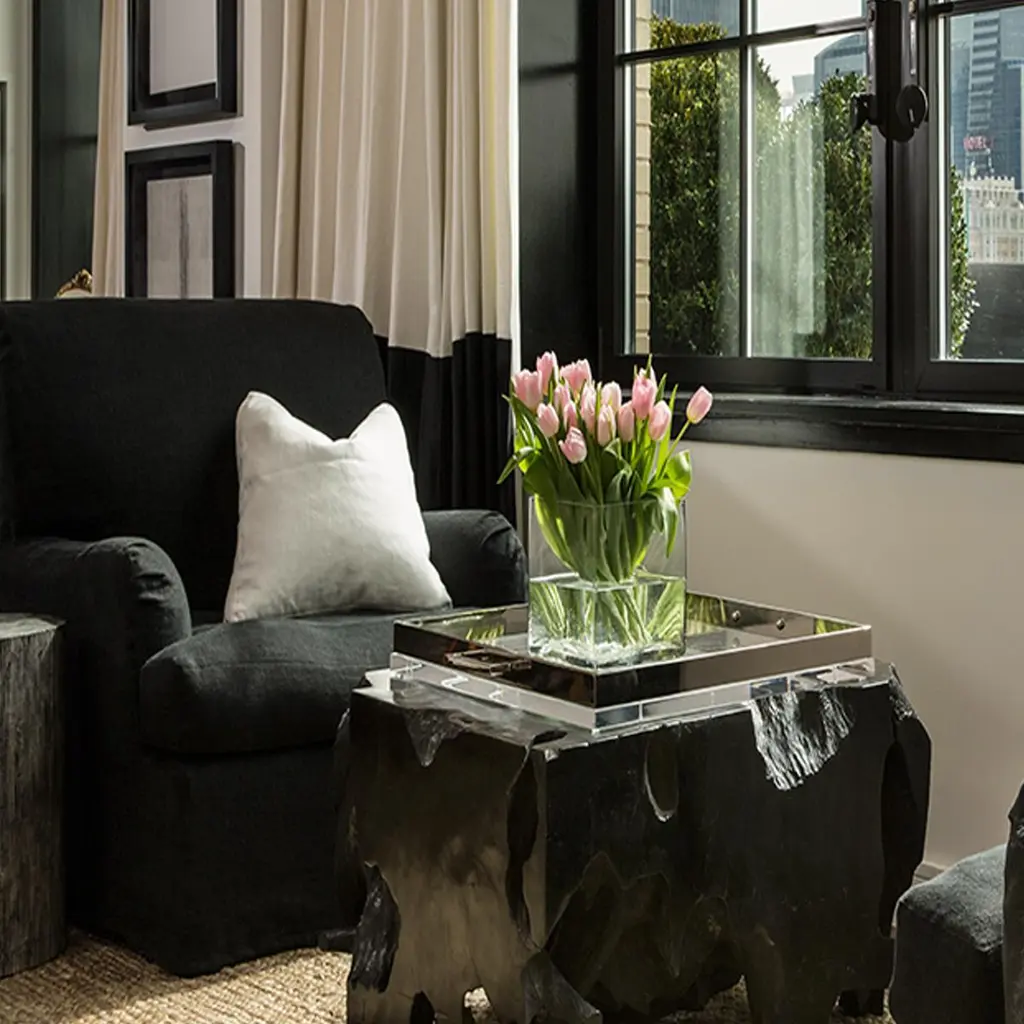 If you want an accessory of pure indulgent luxury look no further The Mies Trays are in a class of their own thick luxe highly polished Acrylic and entirely hand crafted in the U.S. Less is more with the classic simplistic design, but no better way to bring a table or nightstand to life with one of these incredibly luxurious trays and a great way to bring order to the chaos of your table top Available in Polished Stainless or Polished Stainless + Acrylic!Various Sizes Available + Custom