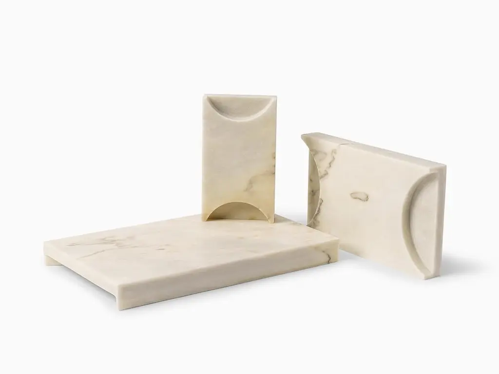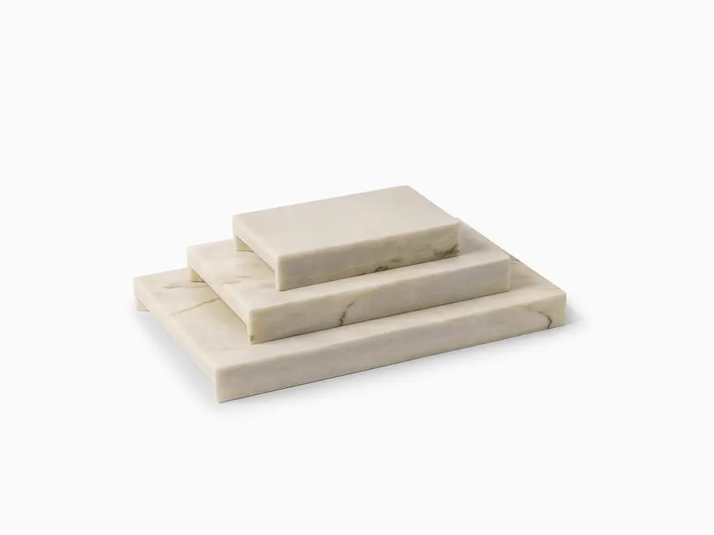 With pure and simple shapes, Alban Le Henry created a set of stylish, elegant, and clean trays. Crafted from both natural Portuguese marble or ash solid wood, the ECLIPSE trays feature veining and colouring variations, resulting in one-of-a-kind pieces.The almost hidden handles are a perfect example of form and function as its best, making this piece as decorative as practical.The ECLIPSE trays are available in three different sizes, in marble from Estremoz or in natural ash wood.