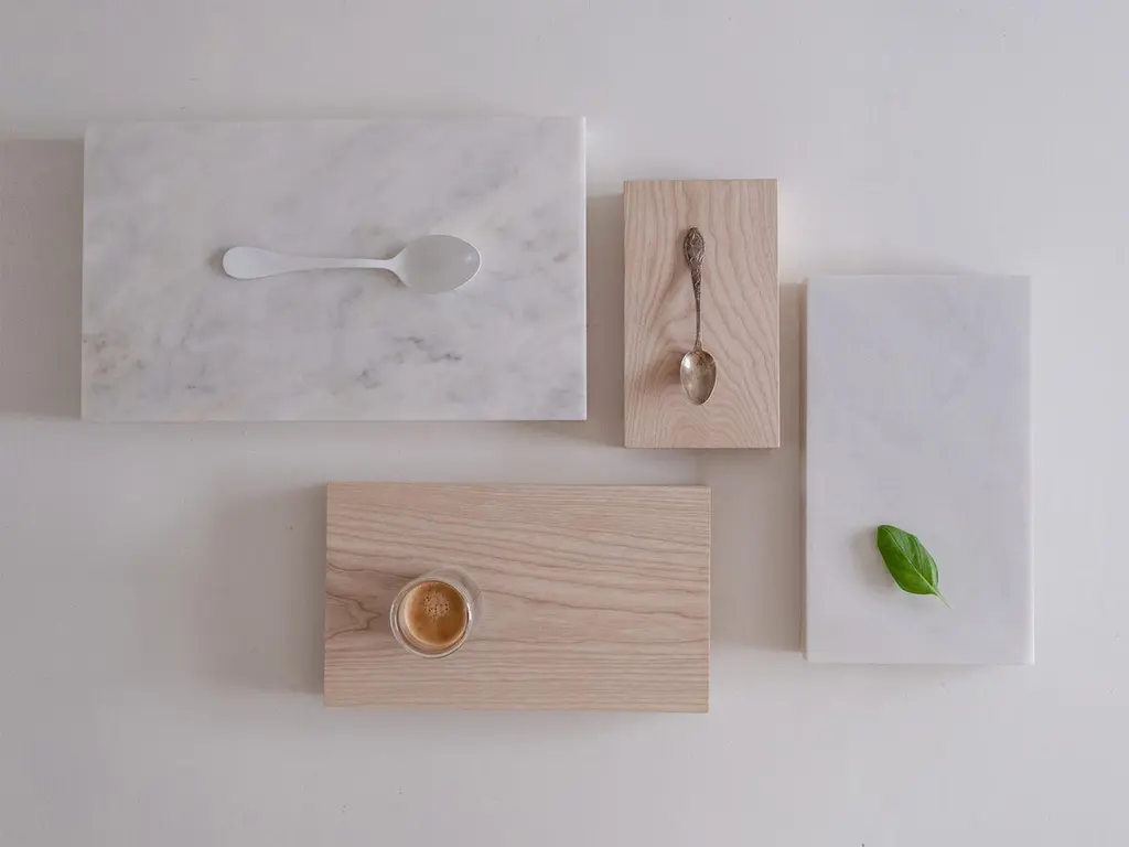 With pure and simple shapes, Alban Le Henry created a set of stylish, elegant, and clean trays. Crafted from both natural Portuguese marble or ash solid wood, the ECLIPSE trays feature veining and colouring variations, resulting in one-of-a-kind pieces.The almost hidden handles are a perfect example of form and function as its best, making this piece as decorative as practical.The ECLIPSE trays are available in three different sizes, in marble from Estremoz or in natural ash wood.