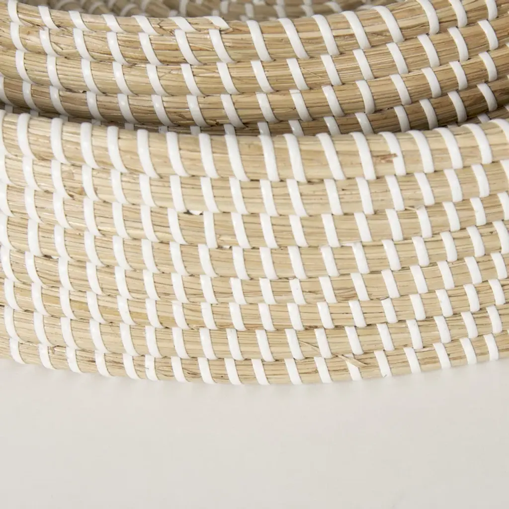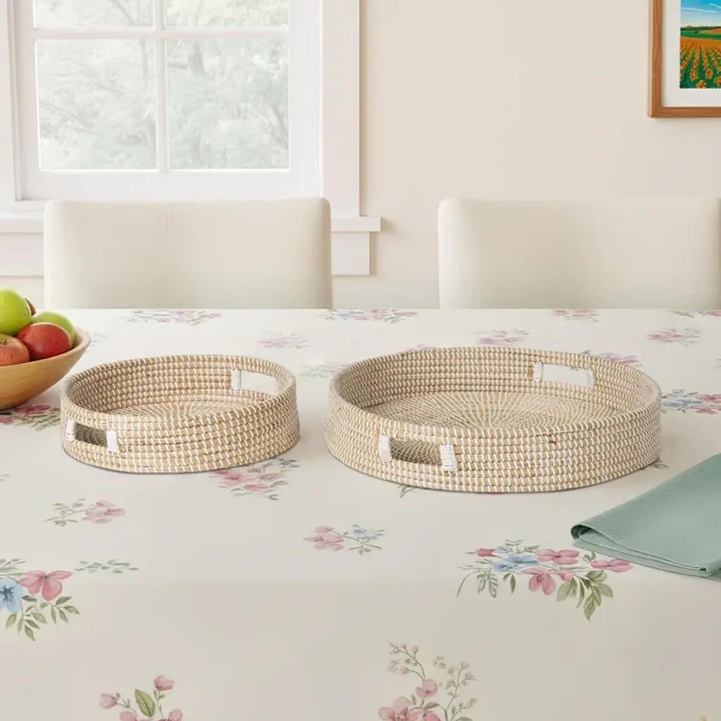 Make your appetizers and drinks feel a little homier with this darling duo of round trays. Beautifully handwoven seagrass offers aesthetic appeal and durability, while the exquisite pattern brings texture to your table. These trays are the perfect option for a home-cooked feast or garden gathering. Another plus is that they're food-safe so you can serve directly off them. Serve your treats in style and bring that farmhouse charm right to your dining area.