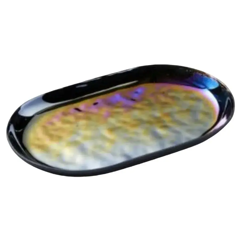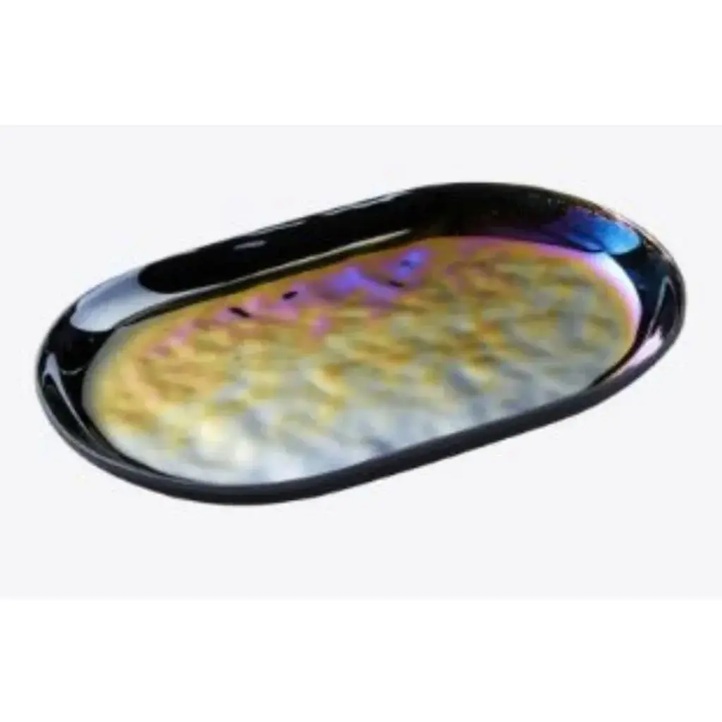 Mirage iris oval tray by radar design: bastien taillard materials: glass. Dimensions: d 20 x w 35 x h 3 cm available in silver, gold or iris finish. Elegant, timeless, understated. The radar collection allows you to take a welcome break from the teeming world of objects and styles, and proposes practical, beautifully designed products made by aesthetes for aesthetes.