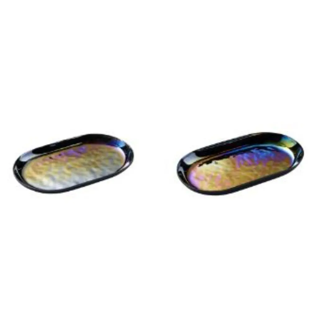 Mirage Iris Round Tray by RadarDesign: Bastien TaillardMaterials: glass.Dimensions: D 50 x W 50 x H 3 cmAvailable in silver, gold or Iris finish.Elegant, timeless, understated. The RADAR collection allows you to take a welcome break from the teeming world of objects and styles, and proposes practical, beautifully designed products made by aesthetes for aesthetes.Francesca Bertini, Milanese born in the Mecca of world design, married to a Neapolitan with whom she lives in France. First tempted by a professional sports career in alpine skiing, she decided to invest in another challenge, her diploma in management of international companies at Università Bocconi in Milan.From marketing for a large editorial group to international and institutional relations for an important think tank European linked to the Italian Ministry of Foreign Affairs, she moved to France and put her experience at the service of the commercial management of a luxury decoration brand. Bastien Taillard was born into a family of interior decorators and designers where creativity was a driving force.After his training at the ENSCI (National School of Industrial Creation, Paris) this tireless traveler settles temporarily in Milan where he meets several of his future mentors, these iconic designers, pioneers and innovators. It is his own path and style that he develops according to his experiences and his encounters.