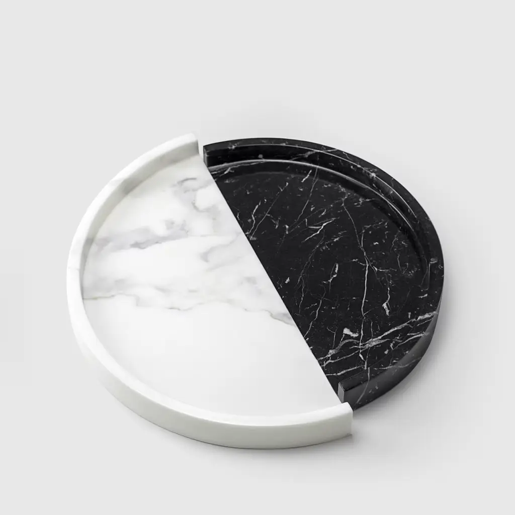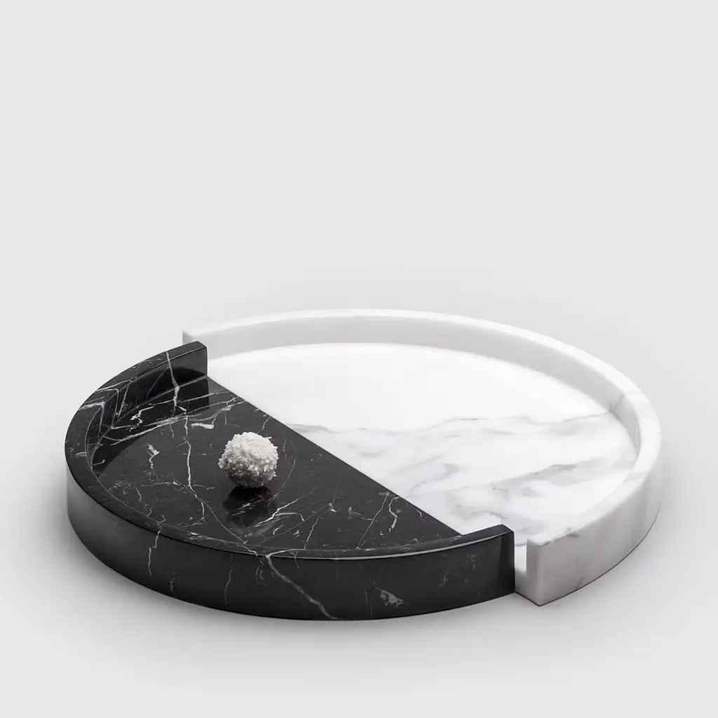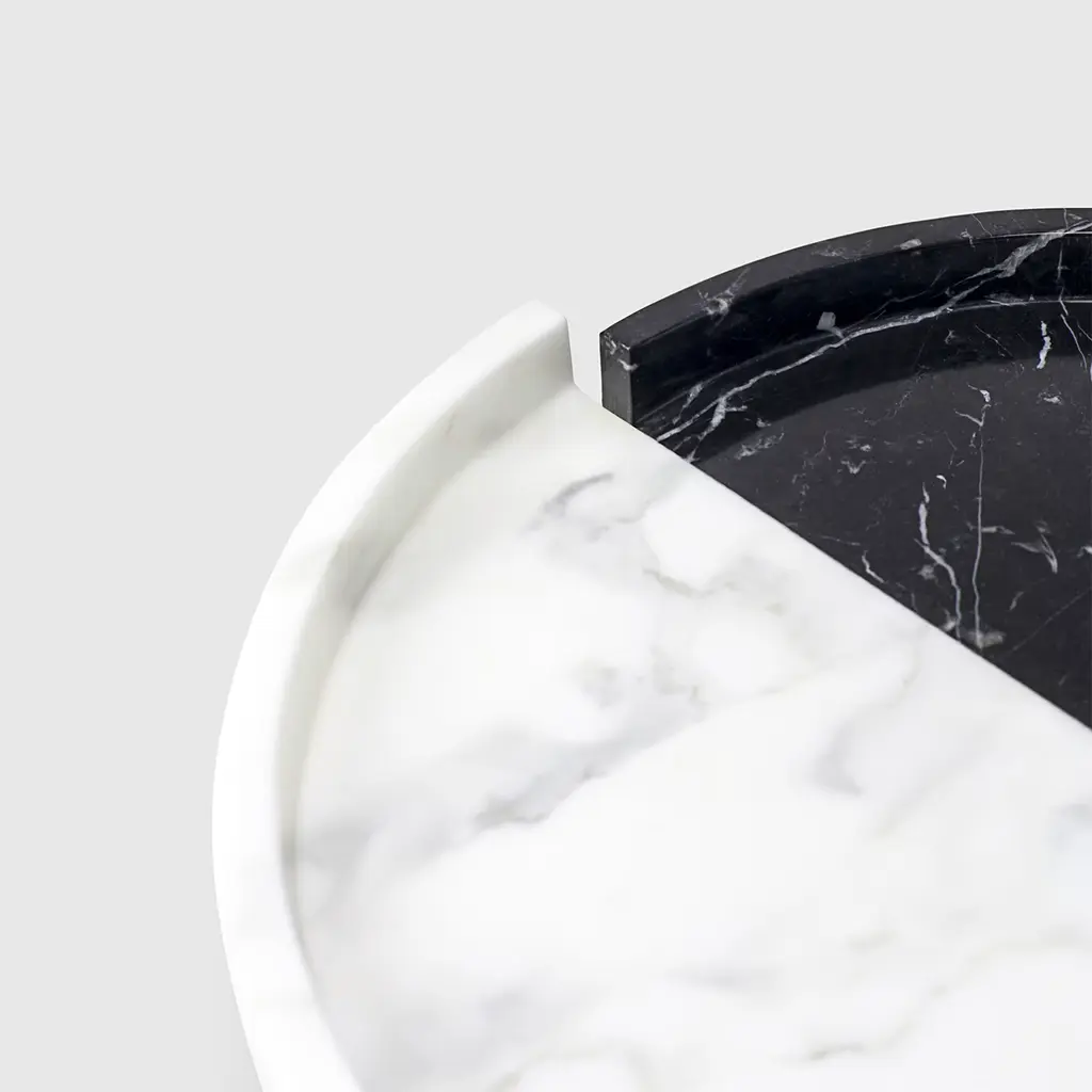 Elegantly playful, this marble tray from the Mistake series of numbered and singular pieces pairs Statuario Carrara and Nero Marquina marble halves in a minimalist and versatile aesthetic. A celebration of imperfections embedded in its unique, open shape, it will make for a refined accent to any living or dining area. Please consult the Artemest catalog for more designs from this exclusive Collection.