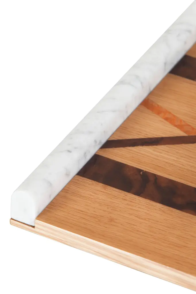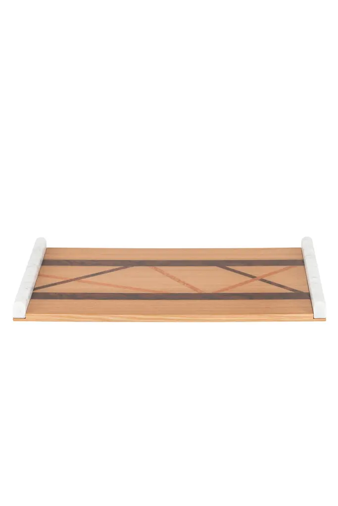 Guadiana serving tray, Lusitanus Home Collection, Handcrafted in Portugal - Europe by Lusitanus Home.Guadiana is a sublime serving tray, designed to uplift layback moments. Handcrafted with precision and care, the wooden matches seamlessly with the handles in Calacatta Cremo marble, making this tray a perfect addition to the contemporary home.Guadiana Serving Tray Material CodesWD018 American Oak; natural colour; high-gloss finishWD154 Walnut root; natural colour; high-gloss finishWD084 Eucalyptus; natural colour; high-gloss finishST010 Calacatta Cremo marble; polishedHandcrafted in Portugal - Europe by GreenappleUnique by design, Crafted by peopleFounded in 2005 by Sérgio Rebola and Rute Martins, Greenapple designs and produces in-house luxury furniture for exclusive customers worldwide.Our own in-house production facility allows us to be obsessed with detail, and gives us the freedom to dedicate ourselves to the most demanding tailor-made and customized work. As Rute designs all the unique pieces, Sérgio assures the high-quality standards through the whole process - from design to production; from production to your home. Fine craftsmanship, whether perfected by experienced hands or state-of-the-art machinery is quintessential in delivering top quality experiences.