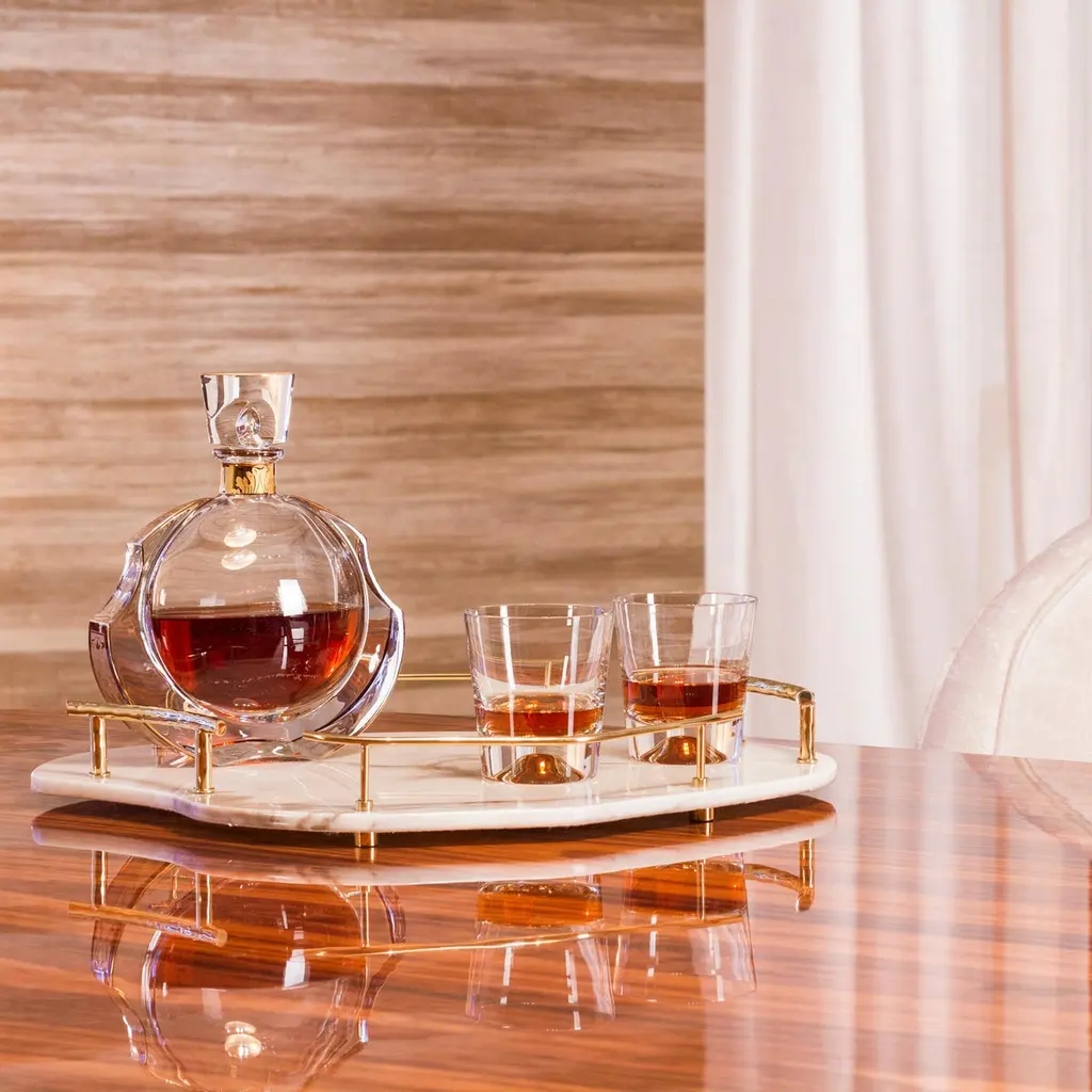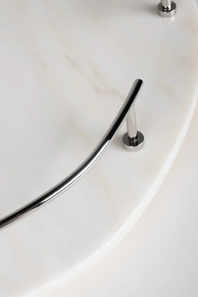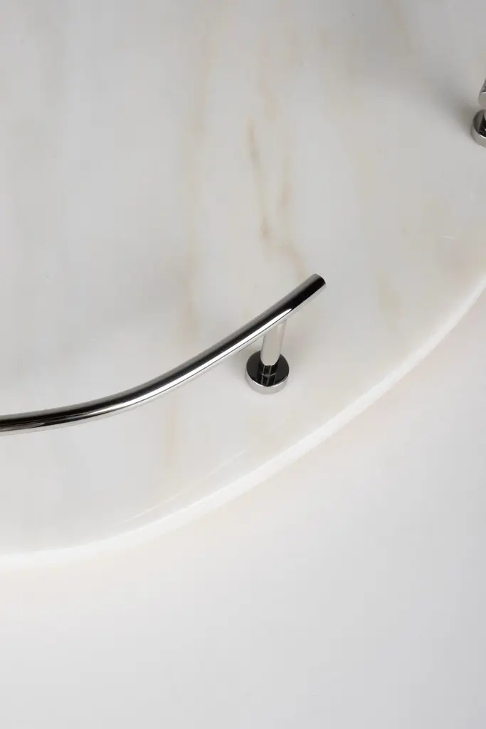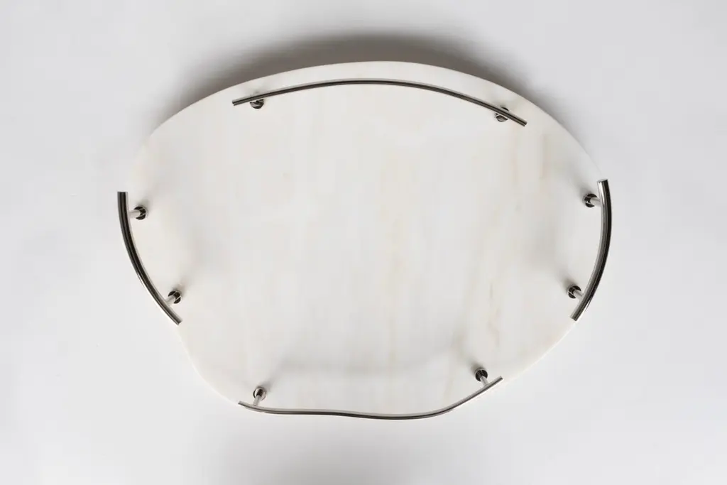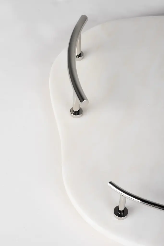 Serving Tray Sakai, Lusitanus Home Collection, Handcrafted in Portugal - Europe by Lusitanus Home.A sublime serving tray, Sakai was design to uplift layback moments. An organic-shape serving tray in Calacatta Cremo Marble with Stainless Steel handles, Sakai is the perfect addition to the contemporary home.Serving tray Sakai materials codes:ME001 Polished stainless steel; ST010 Calacatta Cremo marble; polishedHandcrafted in Portugal - Europe by GreenappleUnique by design, Crafted by peopleFounded in 2005 by Sérgio Rebola and Rute Martins, Greenapple designs and produces in-house luxury furniture for exclusive customers worldwide.Our own in-house production facility allows us to be obsessed with detail, and gives us the freedom to dedicate ourselves to the most demanding tailor-made and customised work. As Rute designs all the unique pieces, Sérgio assures the high-quality standards through the whole process - from design to production; from production to your home. Fine craftsmanship, whether perfected by experienced hands or state-of-the-art machinery is quintessential in delivering top quality experiences.