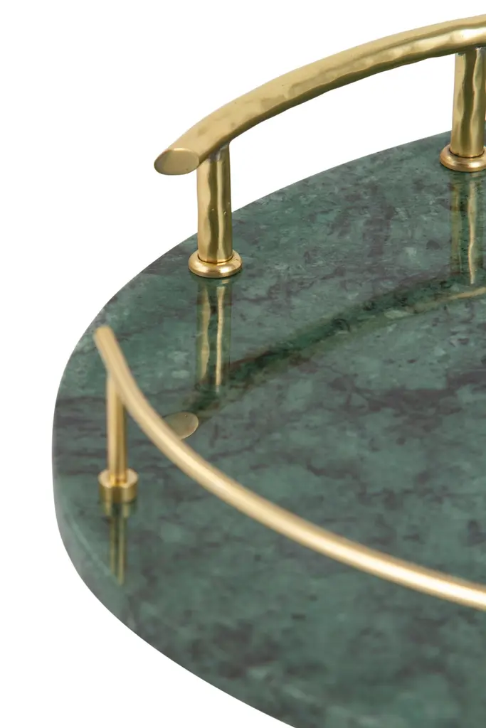 Modern Serving Tray Green Marble Brass Handmade In Portugal By Lusitanus Home