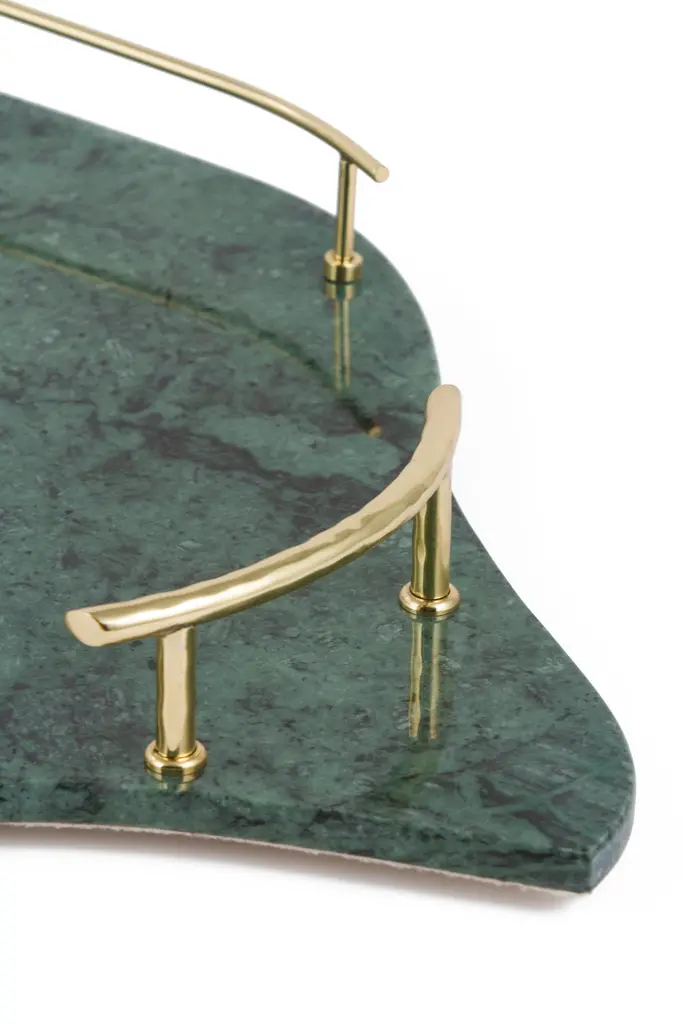 Serving Tray Sakai, Lusitanus Home Collection, Handcrafted in Portugal - Europe by Lusitanus Home.A sublime serving tray, Sakai was design to uplift layback moments. An organic-shape serving tray in Green Guatemala marble with brass handles in high-gloss finish, Sakai is the perfect addition to the contemporary home.Serving tray Sakai materials codes:ME005 Polished brass; high-gloss finishME008 Hammered brass; high-gloss finishST005 Green Guatemala marble; polishedHandcrafted in Portugal - Europe by GreenappleUnique by design, Crafted by peopleFounded in 2005 by Sérgio Rebola and Rute Martins, Greenapple designs and produces in-house luxury furniture for exclusive customers worldwide.Our own in-house production facility allows us to be obsessed with detail, and gives us the freedom to dedicate ourselves to the most demanding tailor-made and customised work. As Rute designs all the unique pieces, Sérgio assures the high-quality standards through the whole process - from design to production; from production to your home. Fine craftsmanship, whether perfected by experienced hands or state-of-the-art machinery is quintessential in delivering top quality experiences.