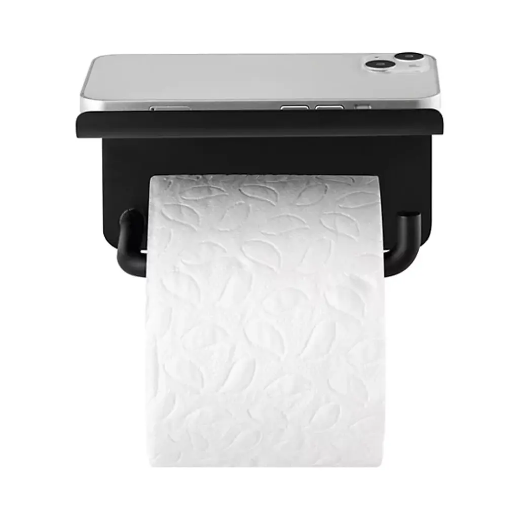 The MODO Toilet Paper Holder With Tray from Blomus gives your lavatory a contemporary look. This toilet paper holder features a contoured rod that holds standard-size toilet paper rolls in place. The included mounting hardware takes to your wall with ease. This furnishment is defined by its crowning tray, which is suited for the placement of your mobile phone