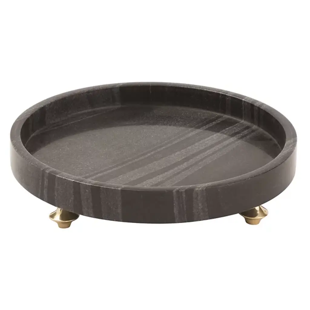 Marble structure with metal rounded feet available in different finishes. Provided with removable leather placemat. Marble finishes available: Arabescato white / green Guatemala / Eramosa brown / black Portoro / Travertino. Metal finishes available: chrome / bronze / brass.