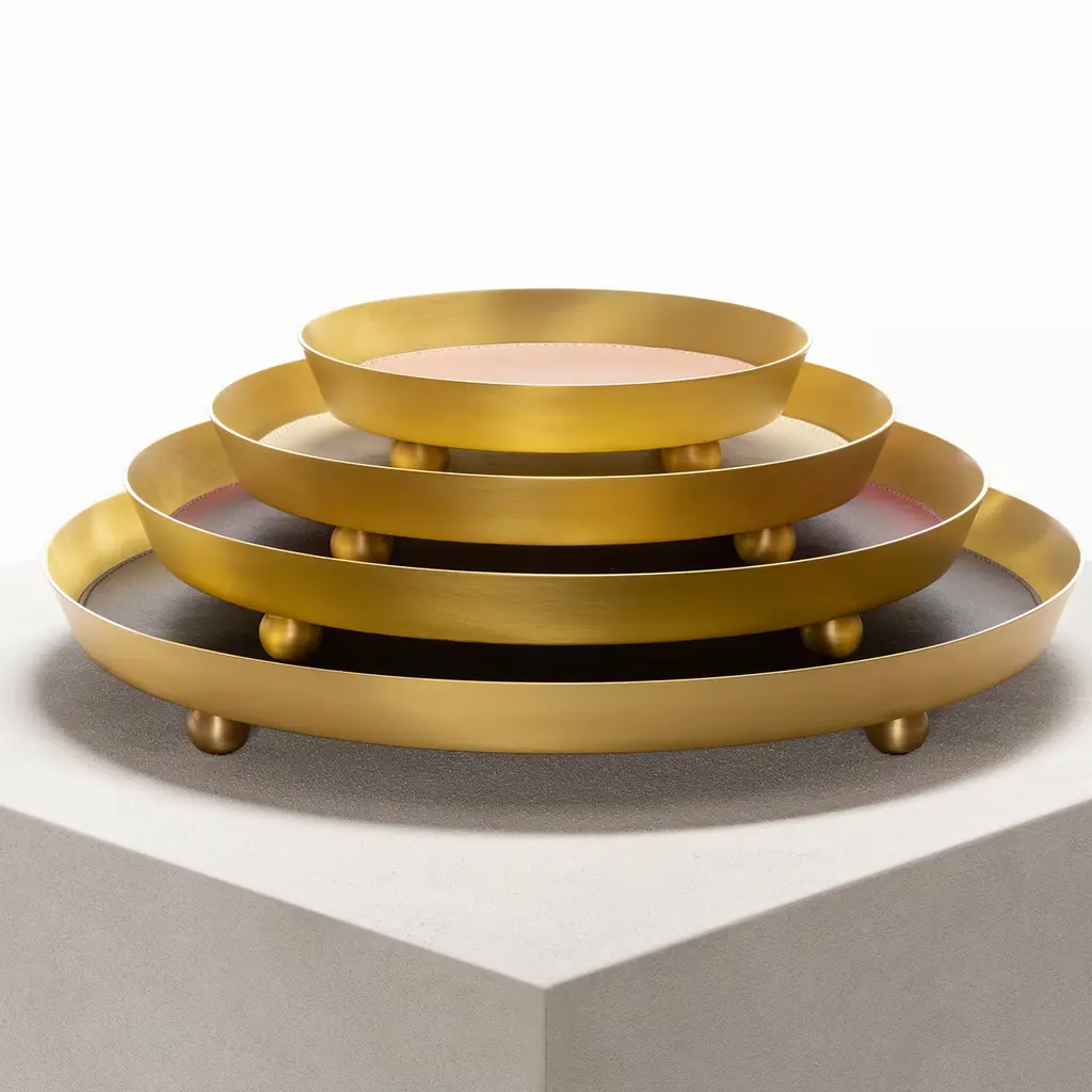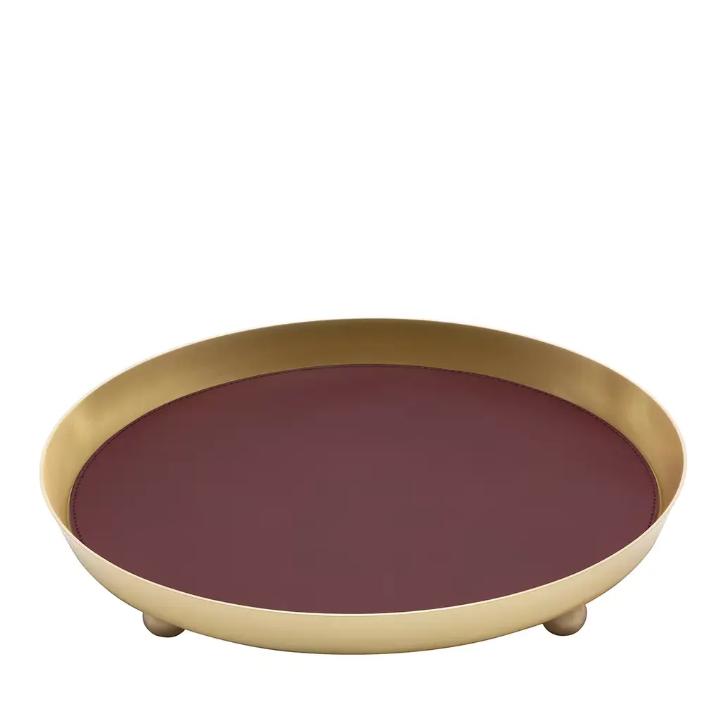 Metal structure with metal rounded feet available in different finishes. Provided with removable leather placemat. Metal finishes available: chrome / bronze / brass.