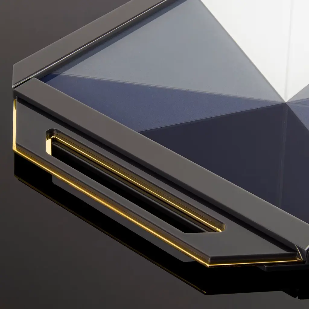 Inspired by the geometric patterns of ancient Florentine marble floors in four colorways: blue, rosé, trench and green. The collection is further adorned by settings made of brass with a gold finish.