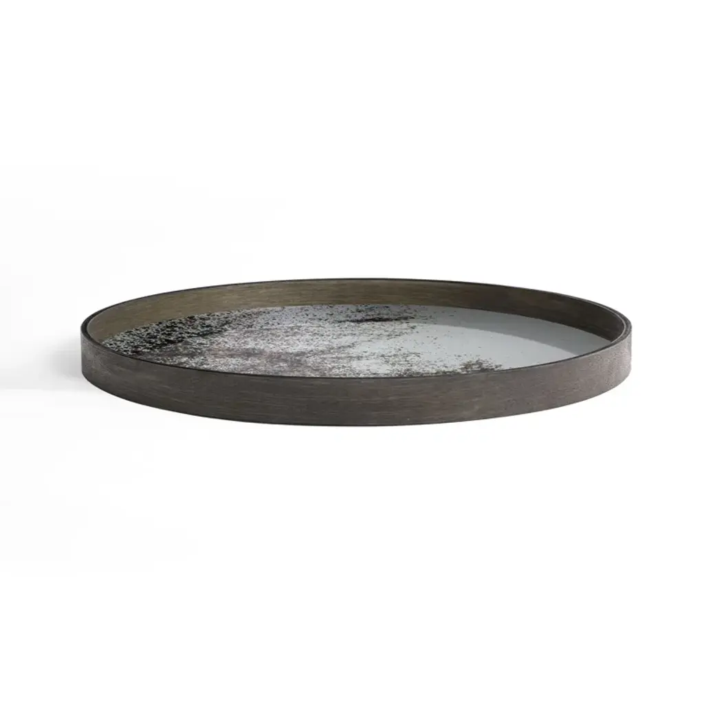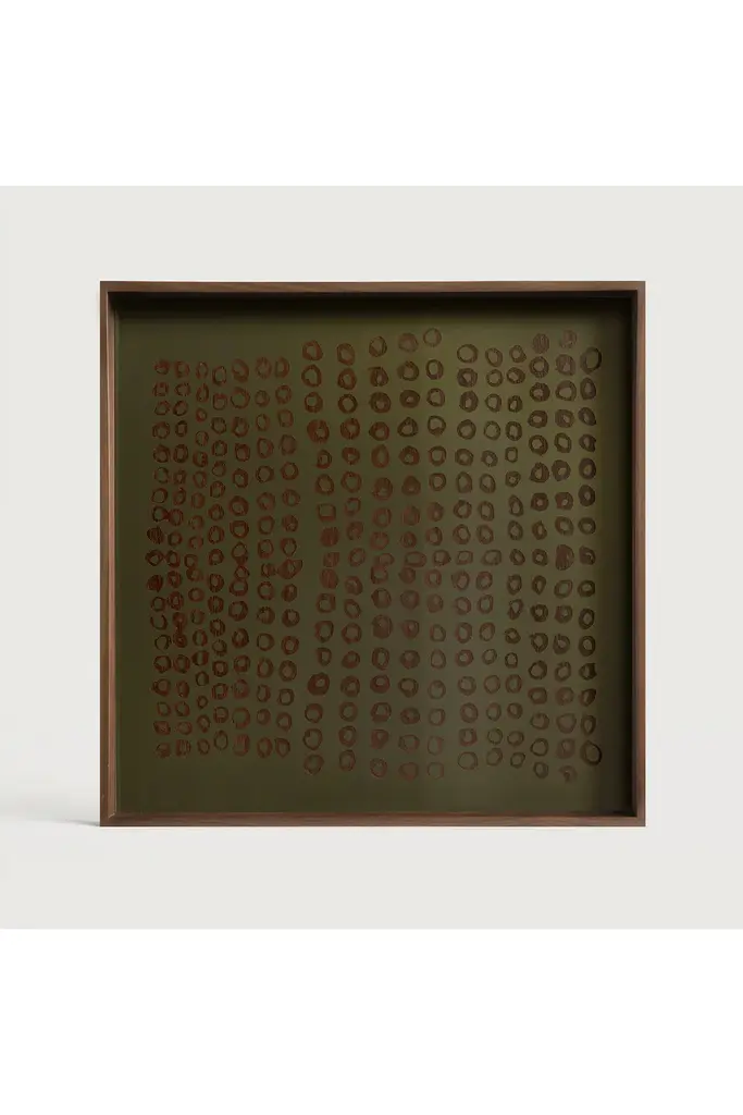The Second Nature tray collection is inspired by the organic shapes and abstract shadows of nature; stacked rocks, the bark of a tree, the markings on a turtle's shell. A harmonious blend of organic inspiration and contemporary design, Second Nature perfectly layers hand-printed glass over the warmth of wood. The artistry of the moss green and metallic ink palette brings a quiet sophistication to its surroundings.