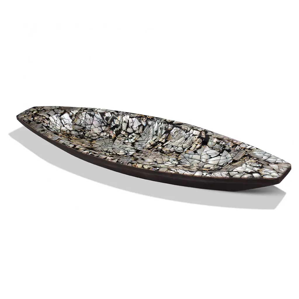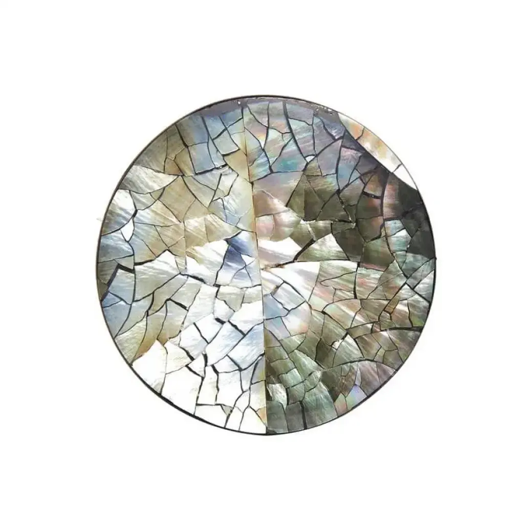 - Handcrafted lazy susan made of wood and mother of pearl shells from Colombia. - The iridescent shimmer of mother of pearl is further accentuated by a high-gloss lacquer finish.
