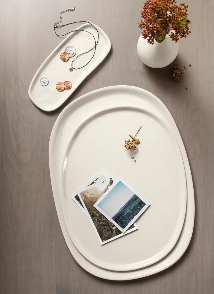 Handcrafted by artisans at HAAND ceramic studio in North Carolina, each tray is slip cast from porcelain to ensure a beautiful, durable accent piece. This functional tray can be used anywhere in your home, from serving food to organizing small items in an entryway or bedroom.