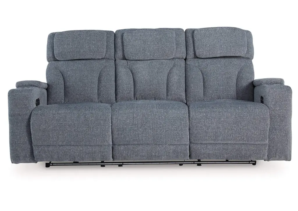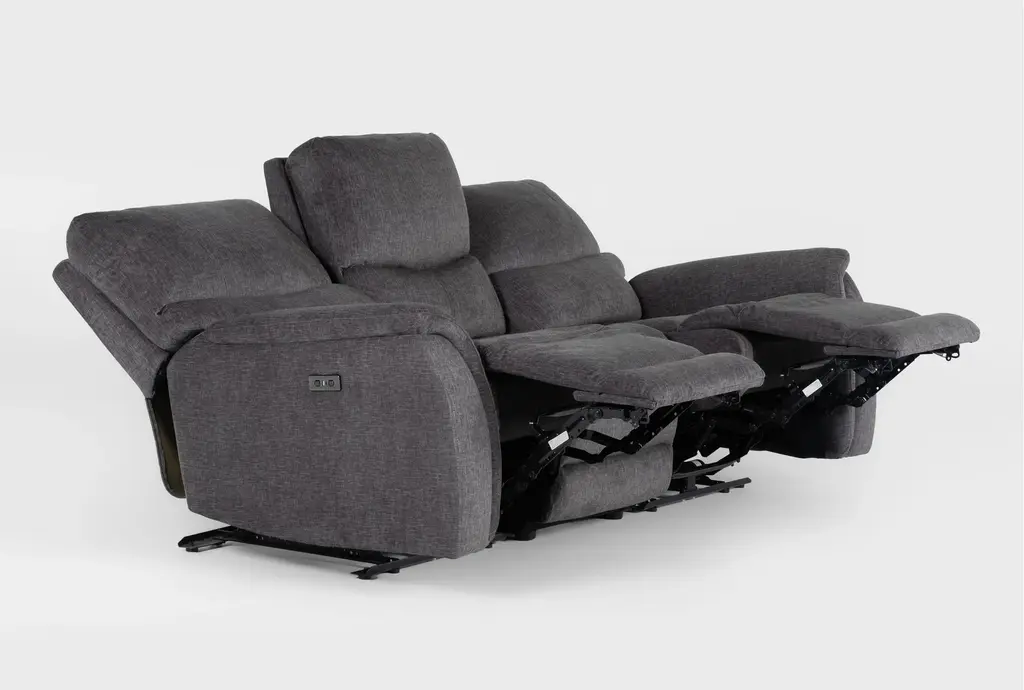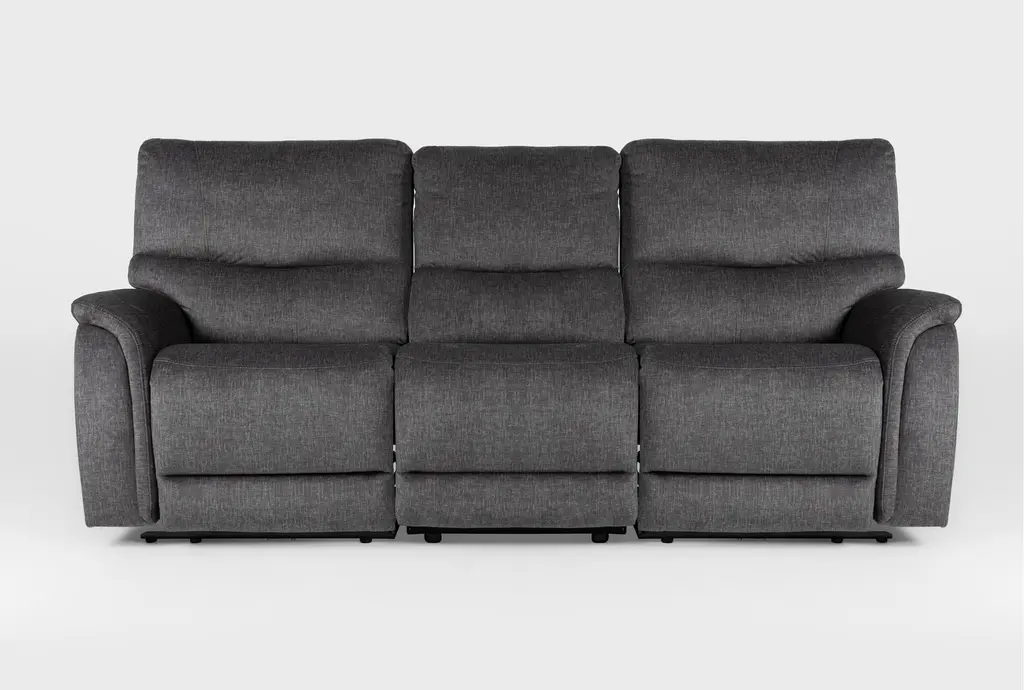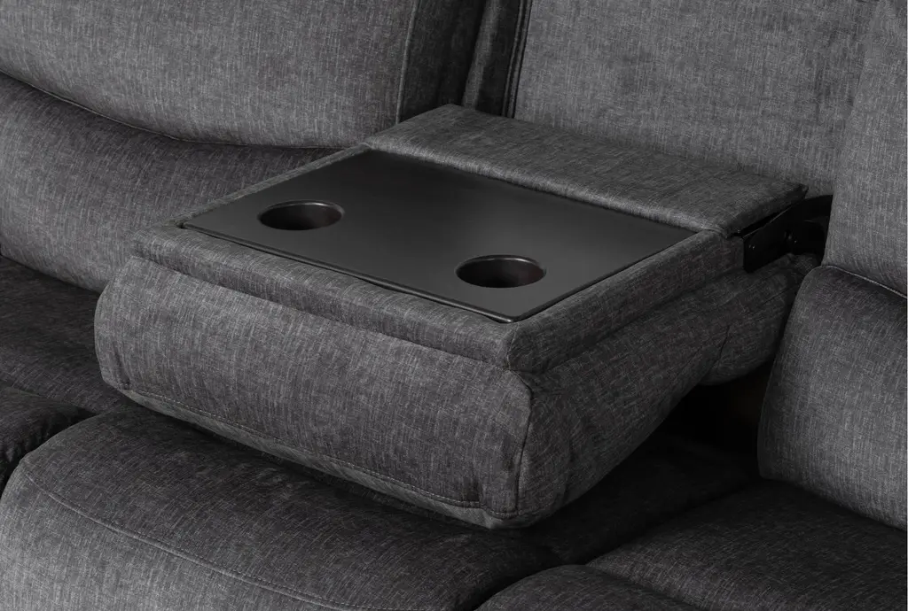 The Nash 3 Piece 88" Power Reclining Modular Sofa with Drop Down Tray is the perfect addition to your living room. Its casual style and gunmetal color blend seamlessly with any decor while offering ultimate comfort. This modular sofa is designed with a focus on convenience and relaxation.