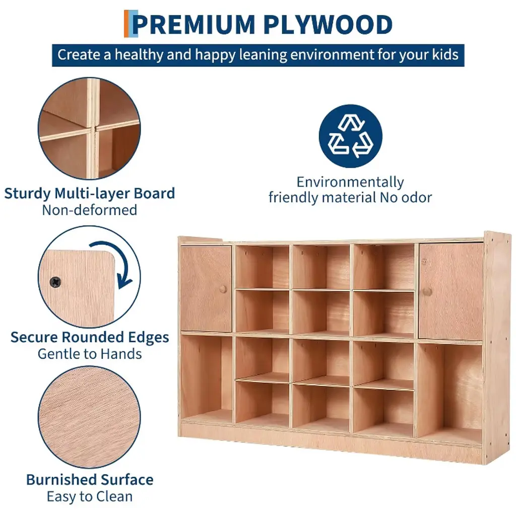 Nasitip 14 Cubby Mobile Tray Storage Cabinet With 2 Cabinet Doors,4-castors And 2-boxes For Home, School,kindergarten