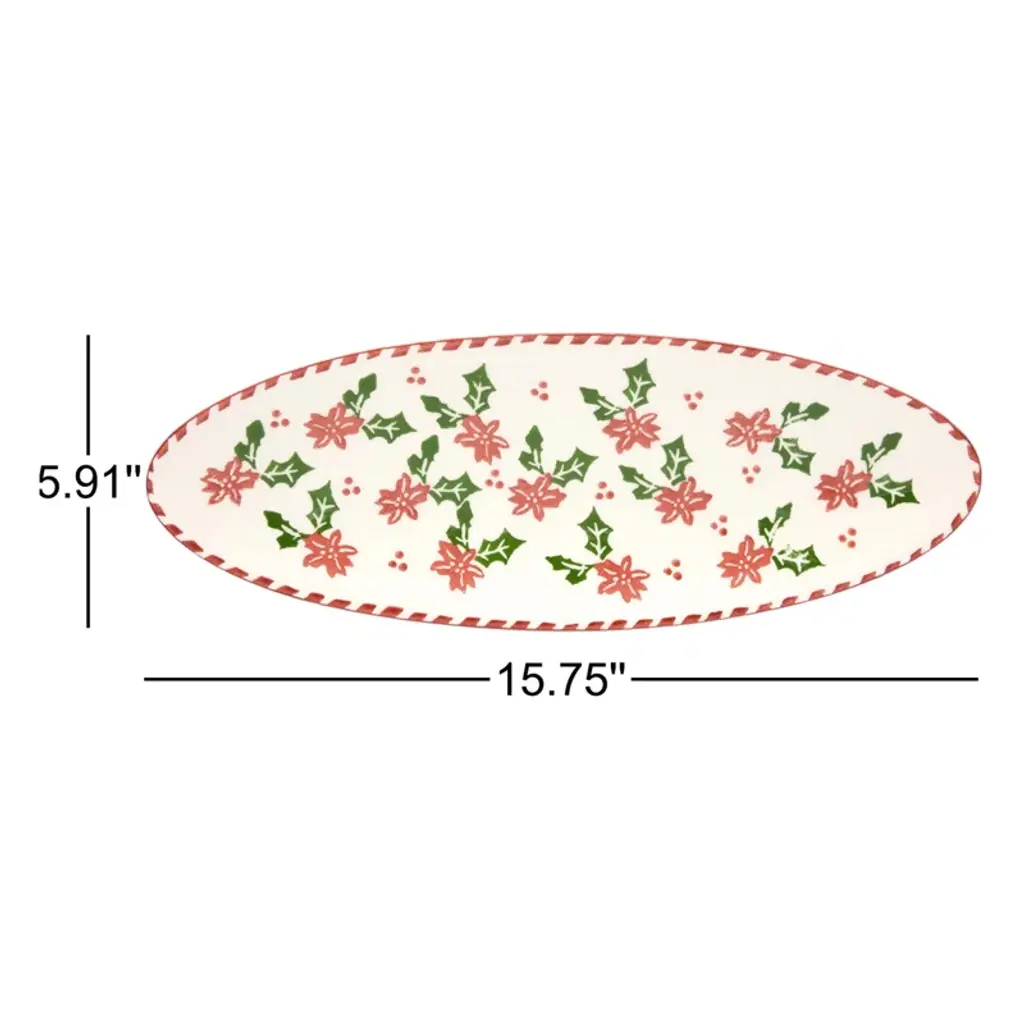 Serve holiday sweets or appetizers on this charming, festive earthenware tray, imported from Portugal . Crafted from lead-free ceramic, this oven-to-table piece easily transitions from warming to serving. Its unique floral design adds a touch of traditional style to any gathering.