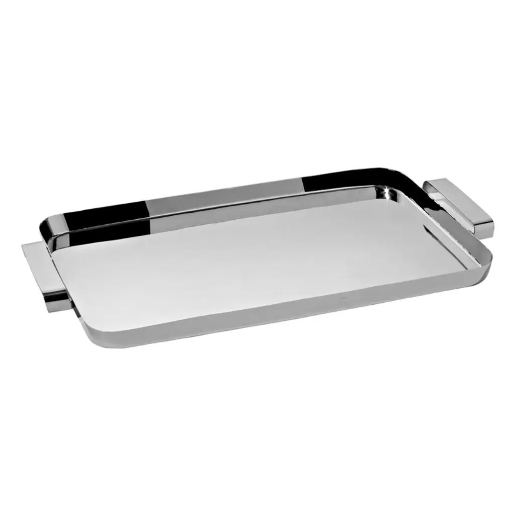 Distinguished by its elegant design, this serving tray made from wood and steel is the epitome of sophistication. Perfect for serving any type of dish, it is a refined addition to both modern and traditional kitchen decor. The interplay of glossy stainless steel and rich wood creates a striking contrast in both texture and color. With its slender handles, it not only adds a touch of unique elegance but also offers effortless usability and portability.