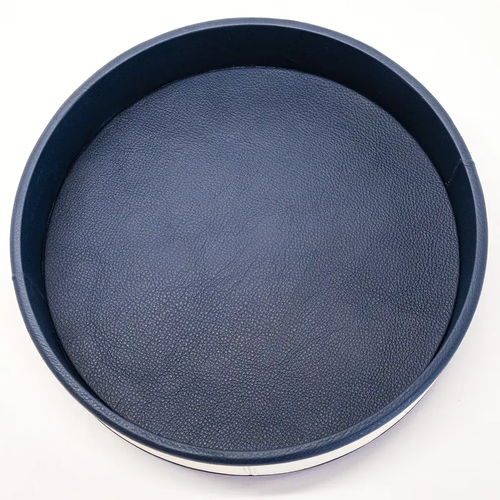 Navy Round Leather Tray