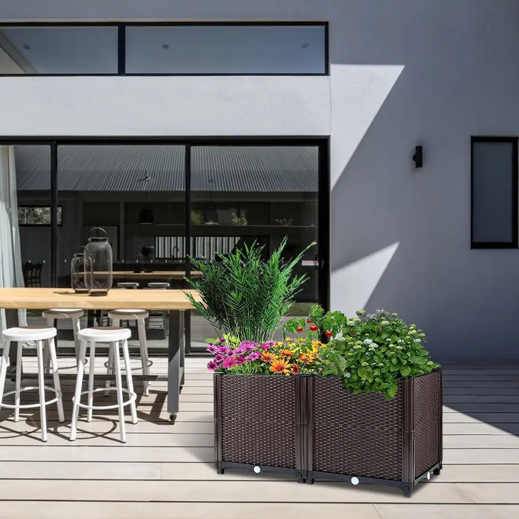 Naysaye Planter Raised Garden Bed Self Watering Tray Durable Pp For Outdoor Garden Patio Balcony, Brown, 23.6"*11.8"*13.8"