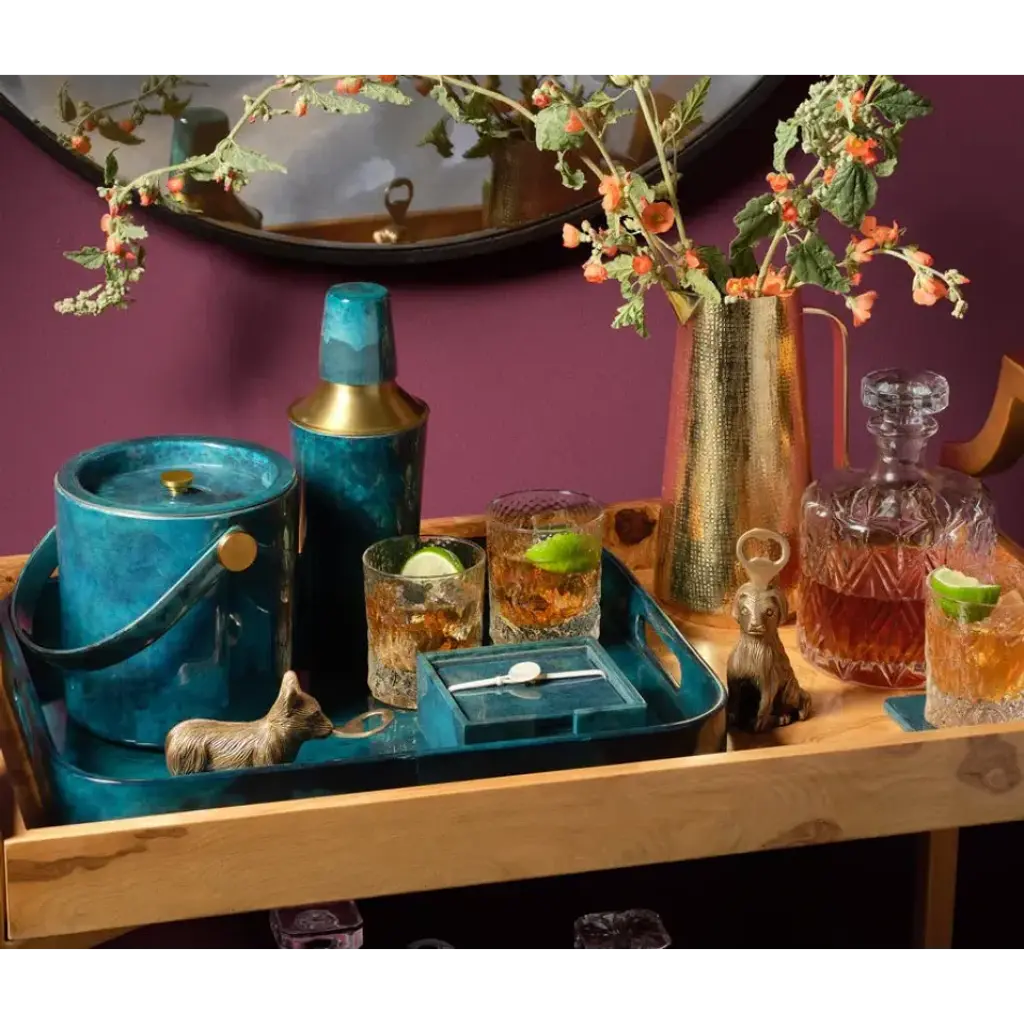Our refined Nelson bar collection features a marble-inspired gloss vellum leather, brass detailing, and smooth textures. Now available in Blue Gloss! Blue Pheasant's products are handmade with care by artisans using natural materials. They are not mass produced, so variation between products should be expected, and this is why we love them! It is these irregularities that makes Blue Pheasant what it is—a special brand whose collections are distinctly handmade, full of charm and originality you’ll never find in machine-made products.